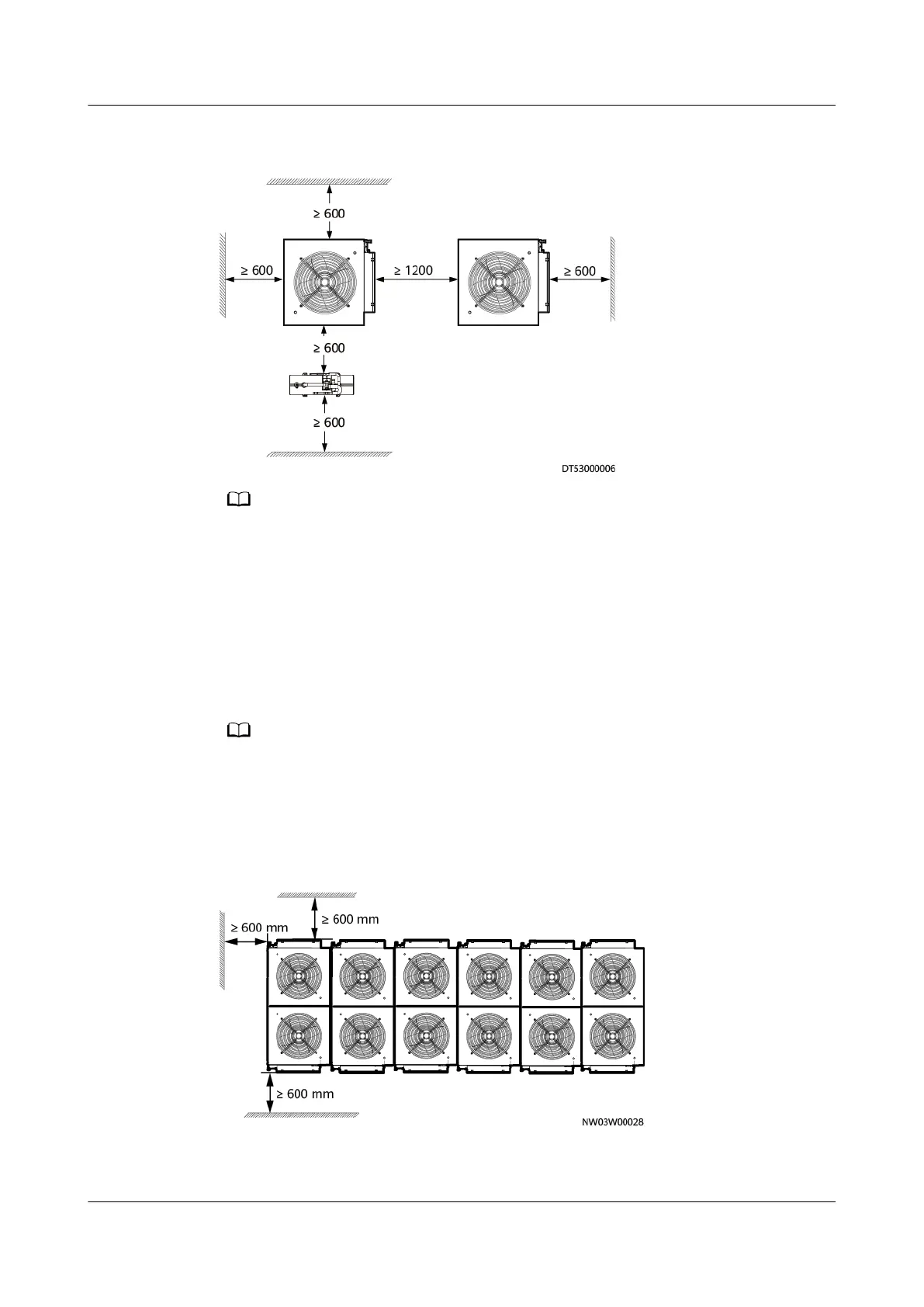 Figure 4-7 Horizontal installation space for an outdoor unit with a low-