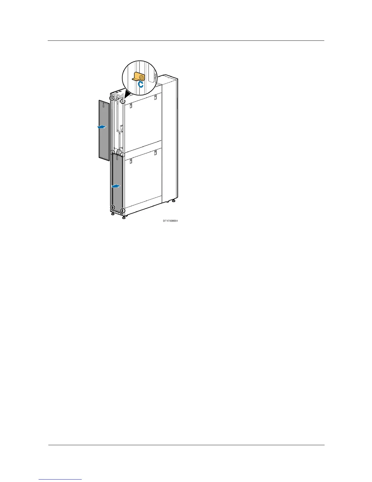 Figure 3-9 shows how to remove the side panel of the NetCol5000-C.