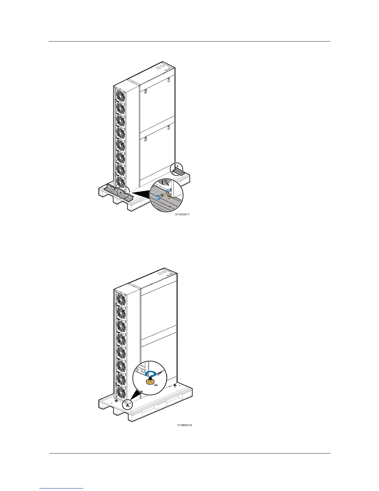 Step 2 Use the wrench to raise the leveling feet until the casters touch the ground, as shown in Figure