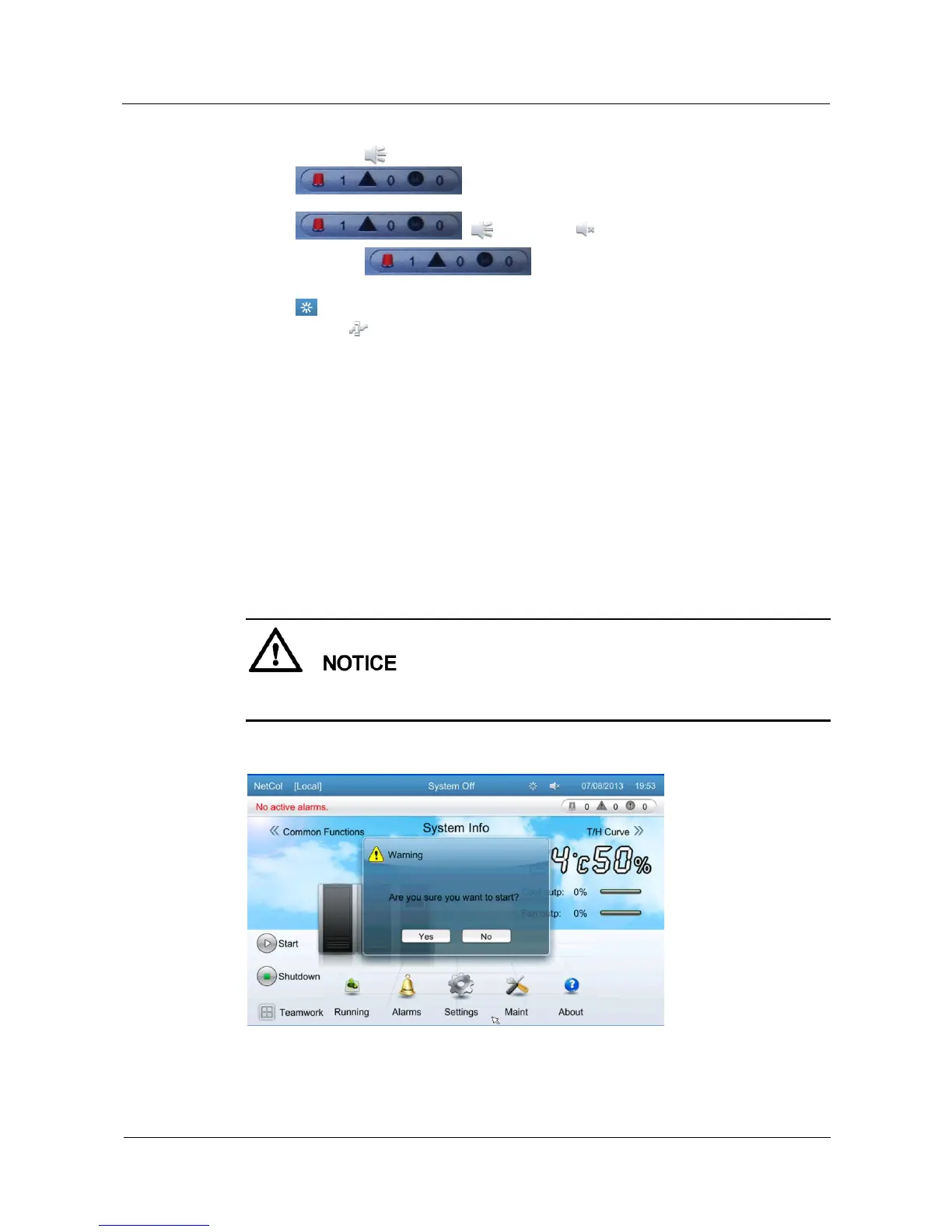 start or shutdown the NetCol5000-C, as shown in Figure 5-4 and Figure 5-5. Tap Yes. If the