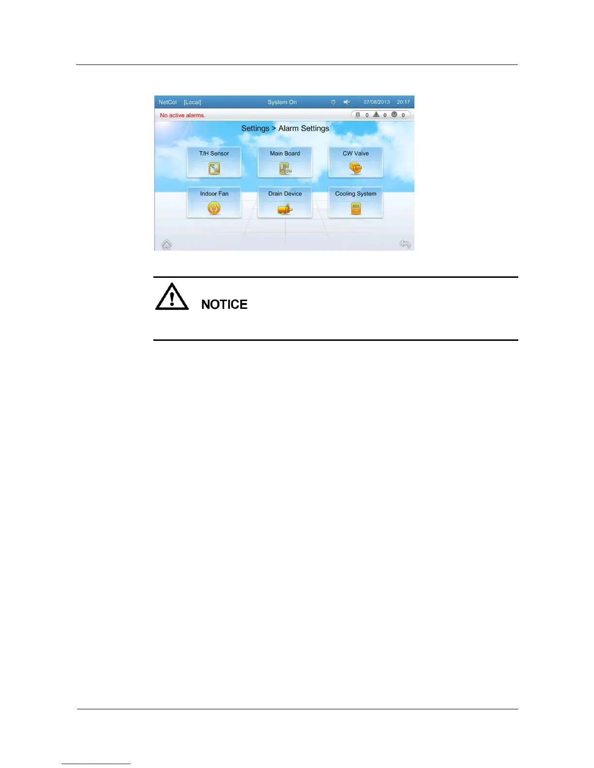 Be careful when configuring alarms. Only professional maintenance personnel can change