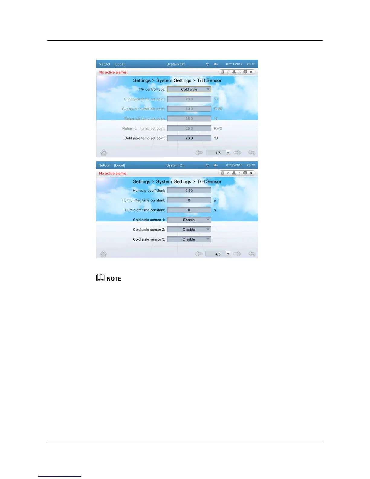 You can only set the temperature and humidity set point whose control type are the same as the T/H