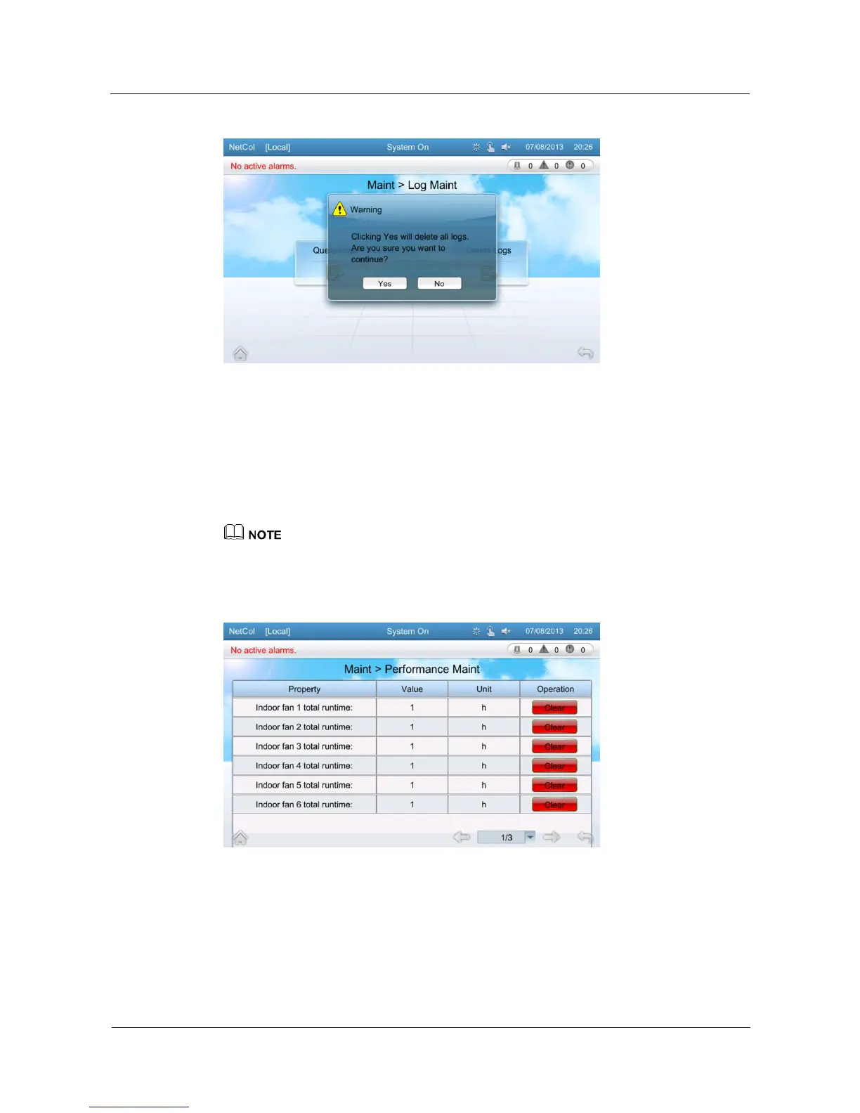 Tap Clear on the performance maintenance screen to clear the value of a parameter.
