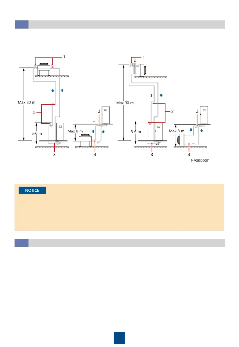 • When routing pipes, ensure that the pipes are level and straight. The positive height