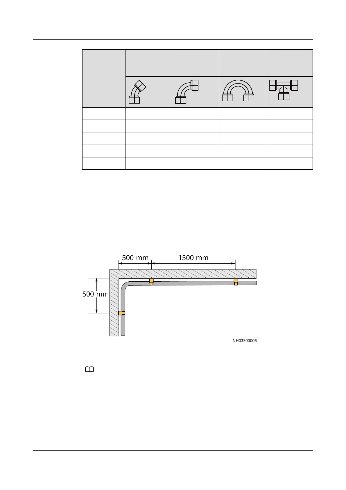 ● In a straight section of the refrigerant pipe, add a support every 1500 mm.
