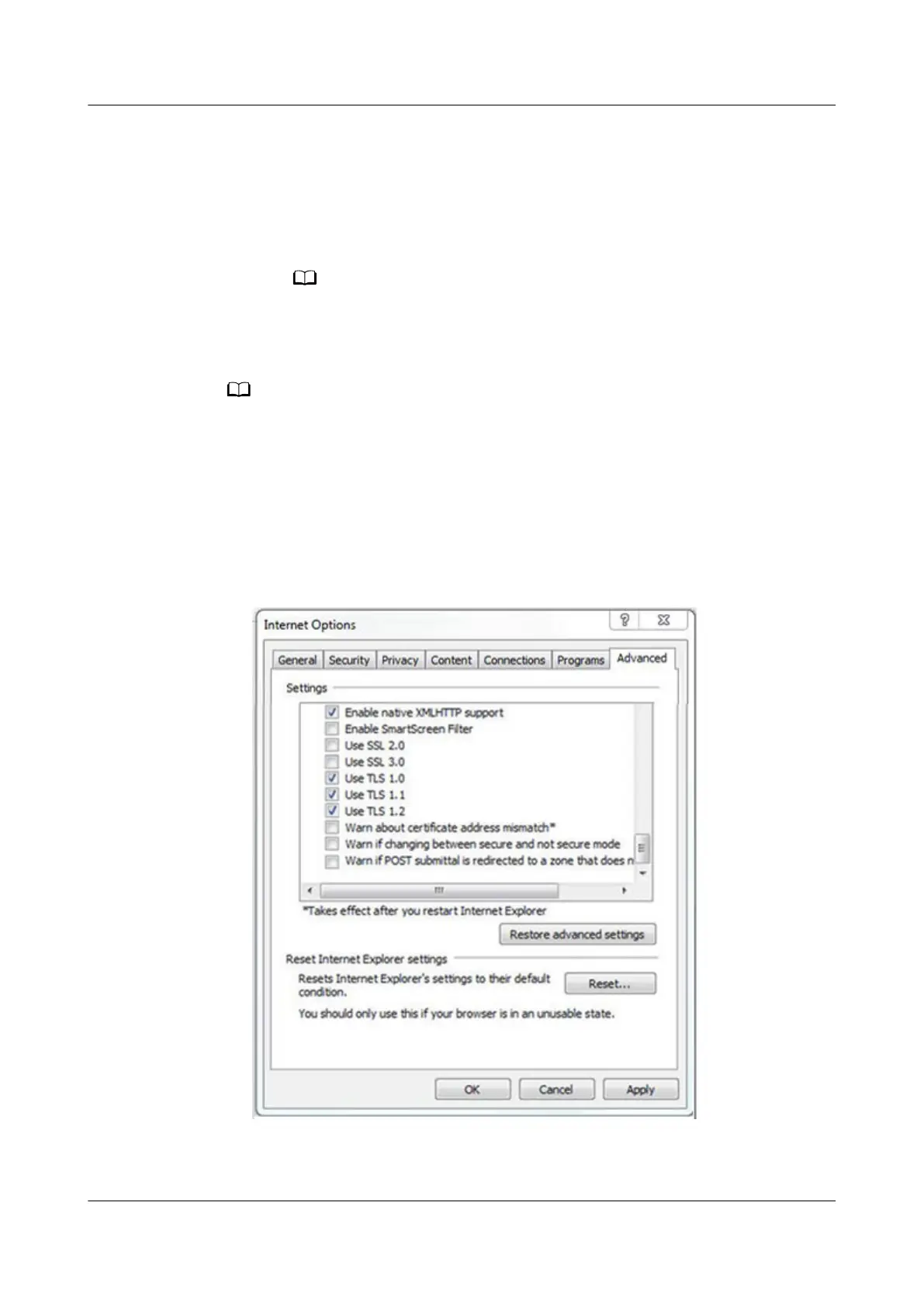 2. Click the Advanced tab and select Use TLS1.1 and Use TLS1.2.