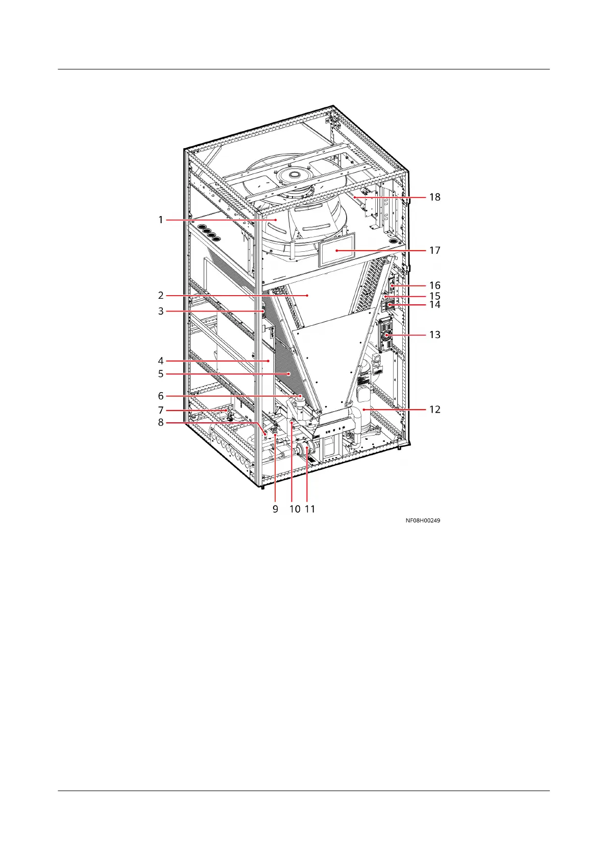 (1) Fan (2) Evaporator (3) Indoor fan drive (4) Electric control box