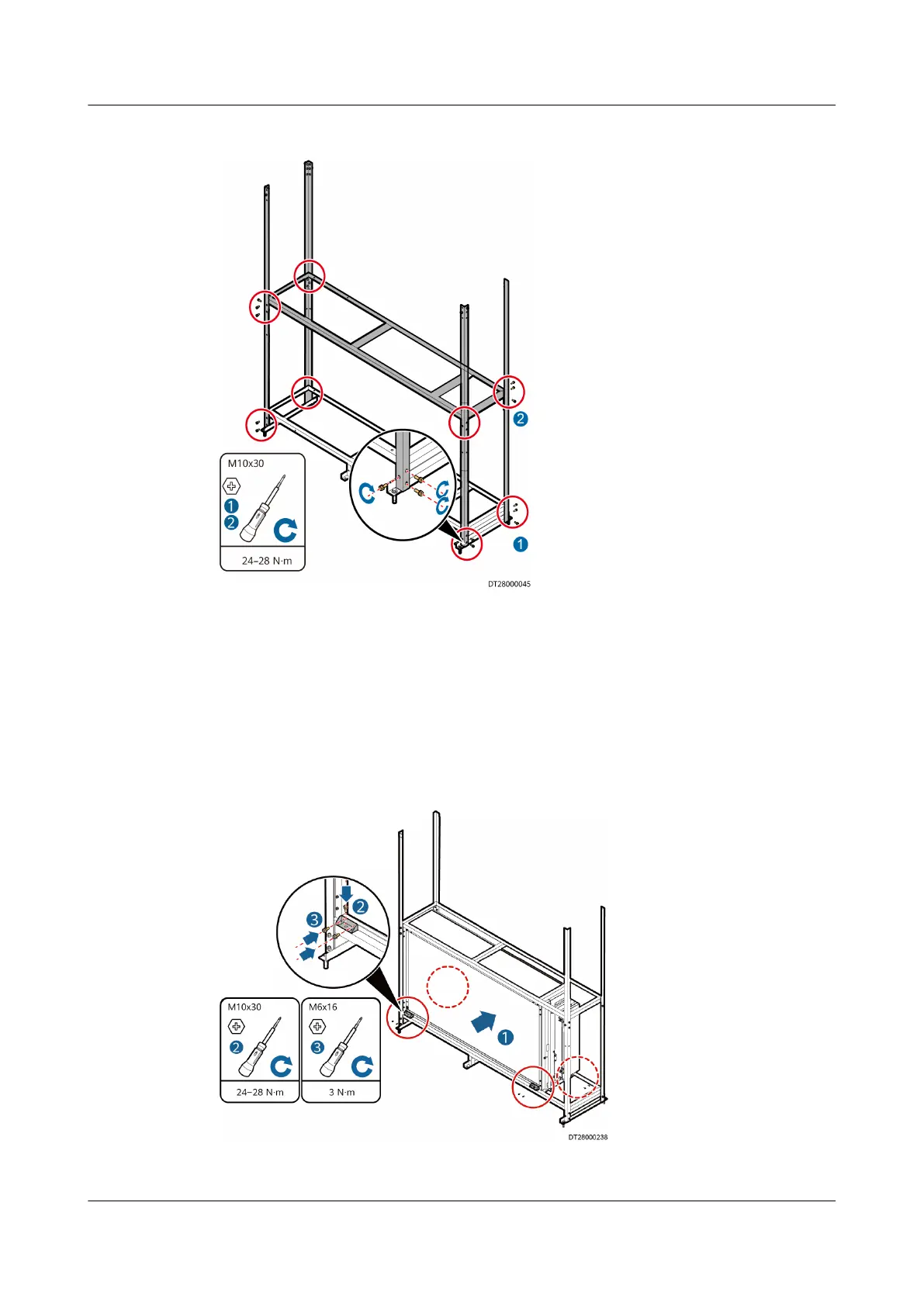 1. Secure the four columns to the rst-layer base using twelve M10x30 stainless