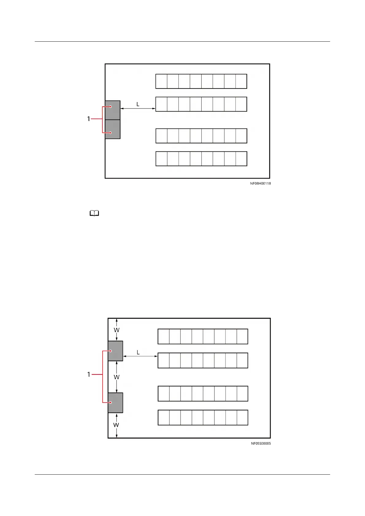 ● L indicates the front maintenance distance for the device. The minimum maintenance