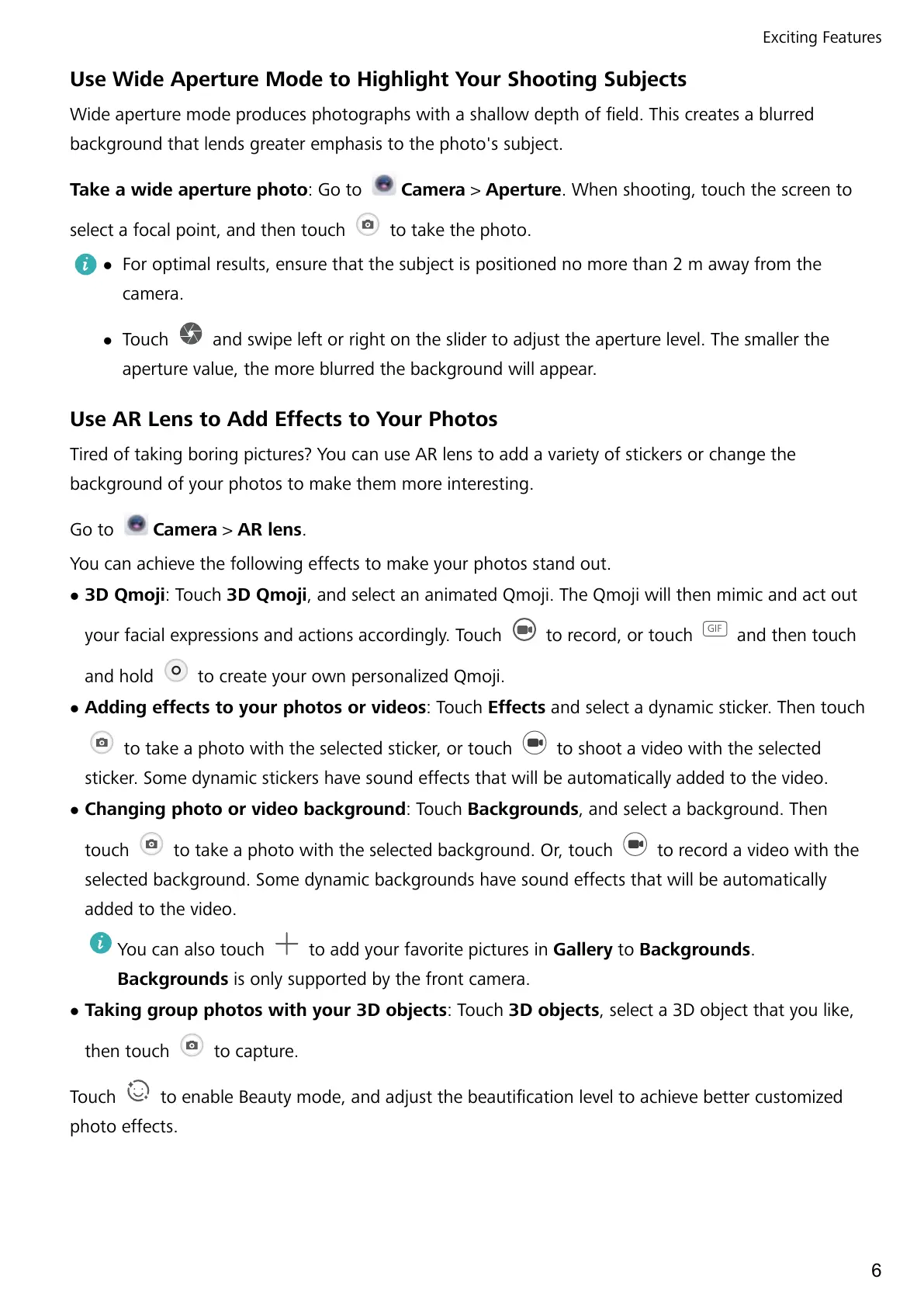 l Adding effects to your photos or videos: Touch Effects and select a dynamic sticker. Then touch