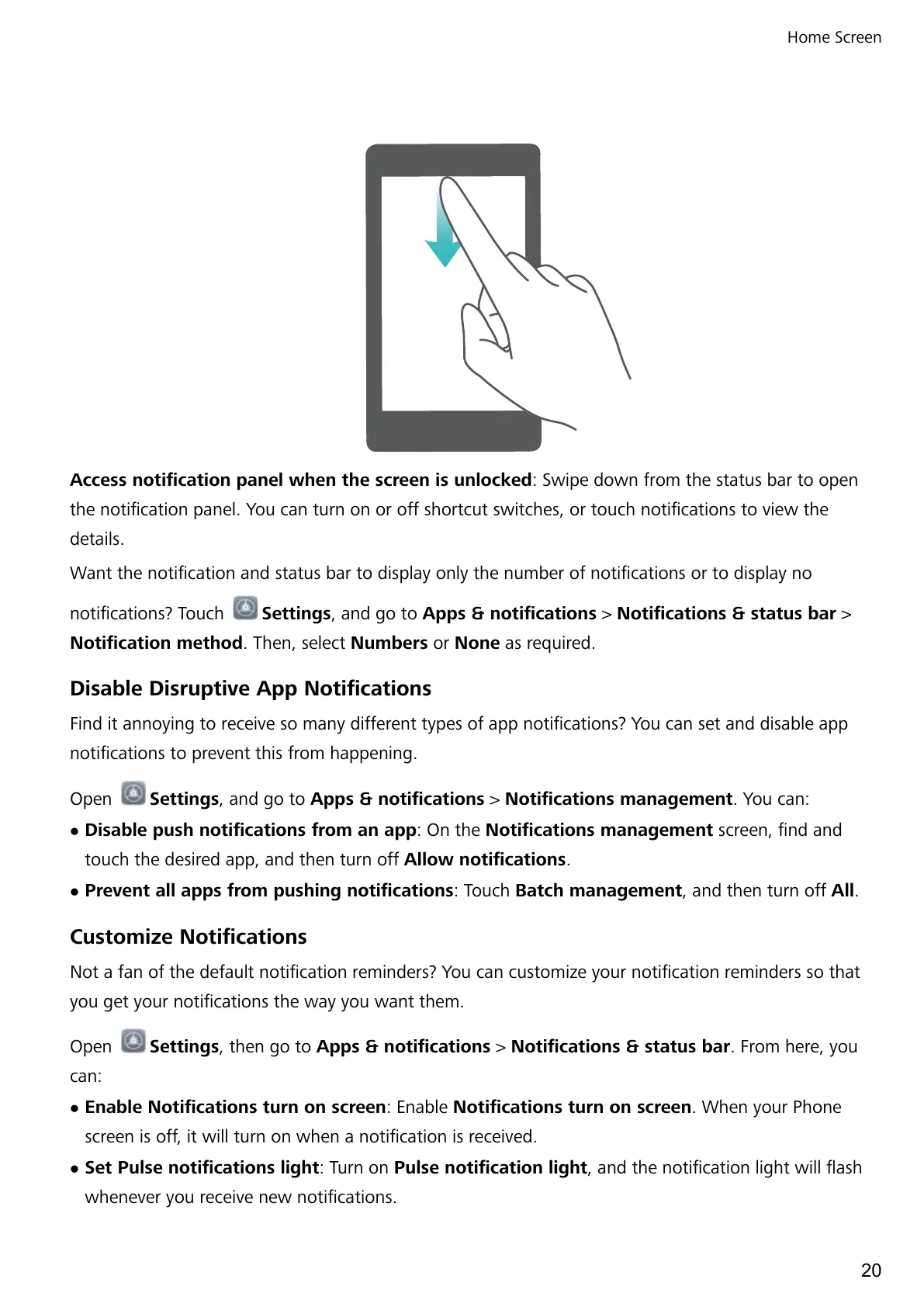 l Set Pulse notications light: Turn on Pulse notication light, and the notication light will ash