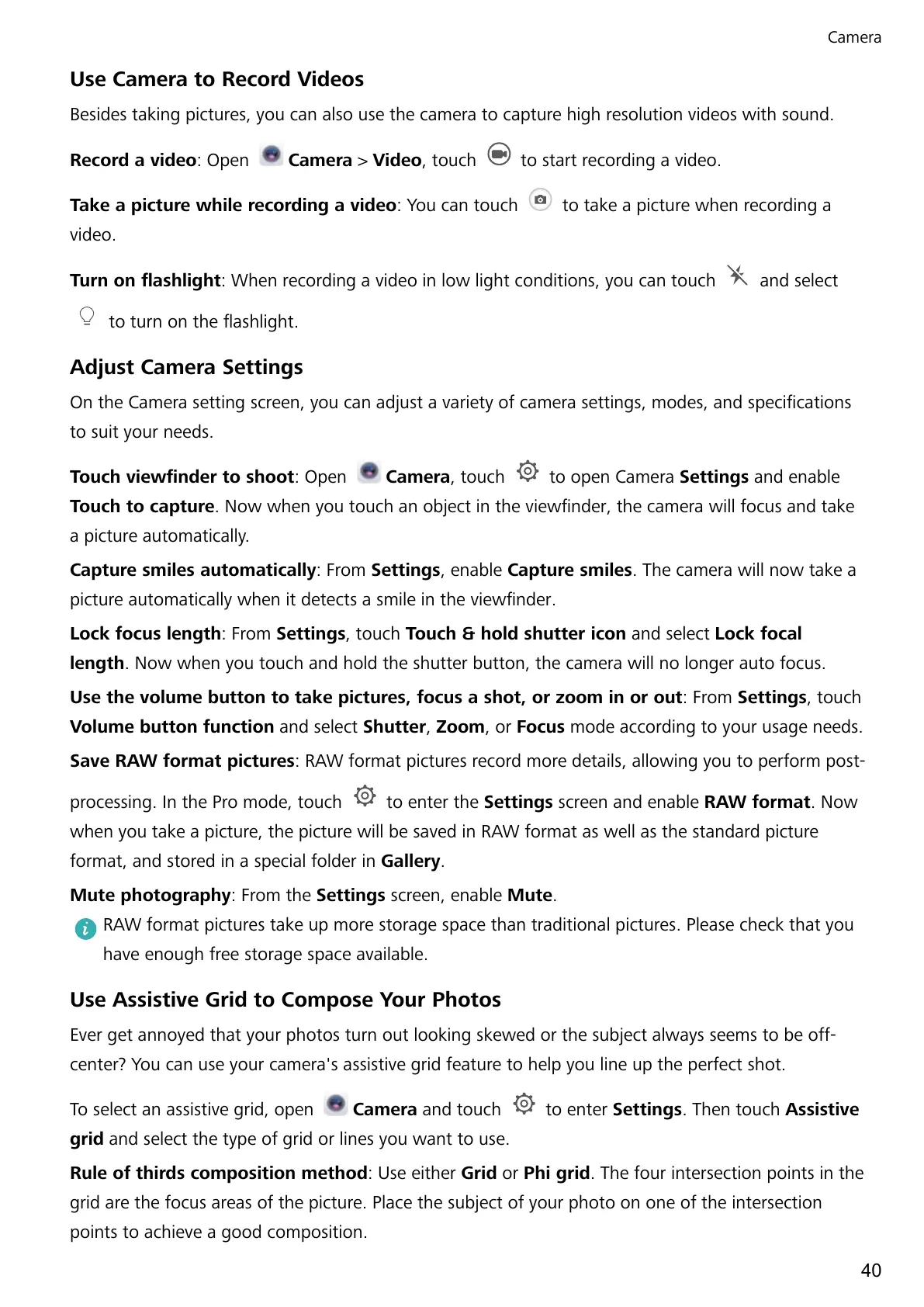 Camera and touch to enter Settings. Then touch Assistive