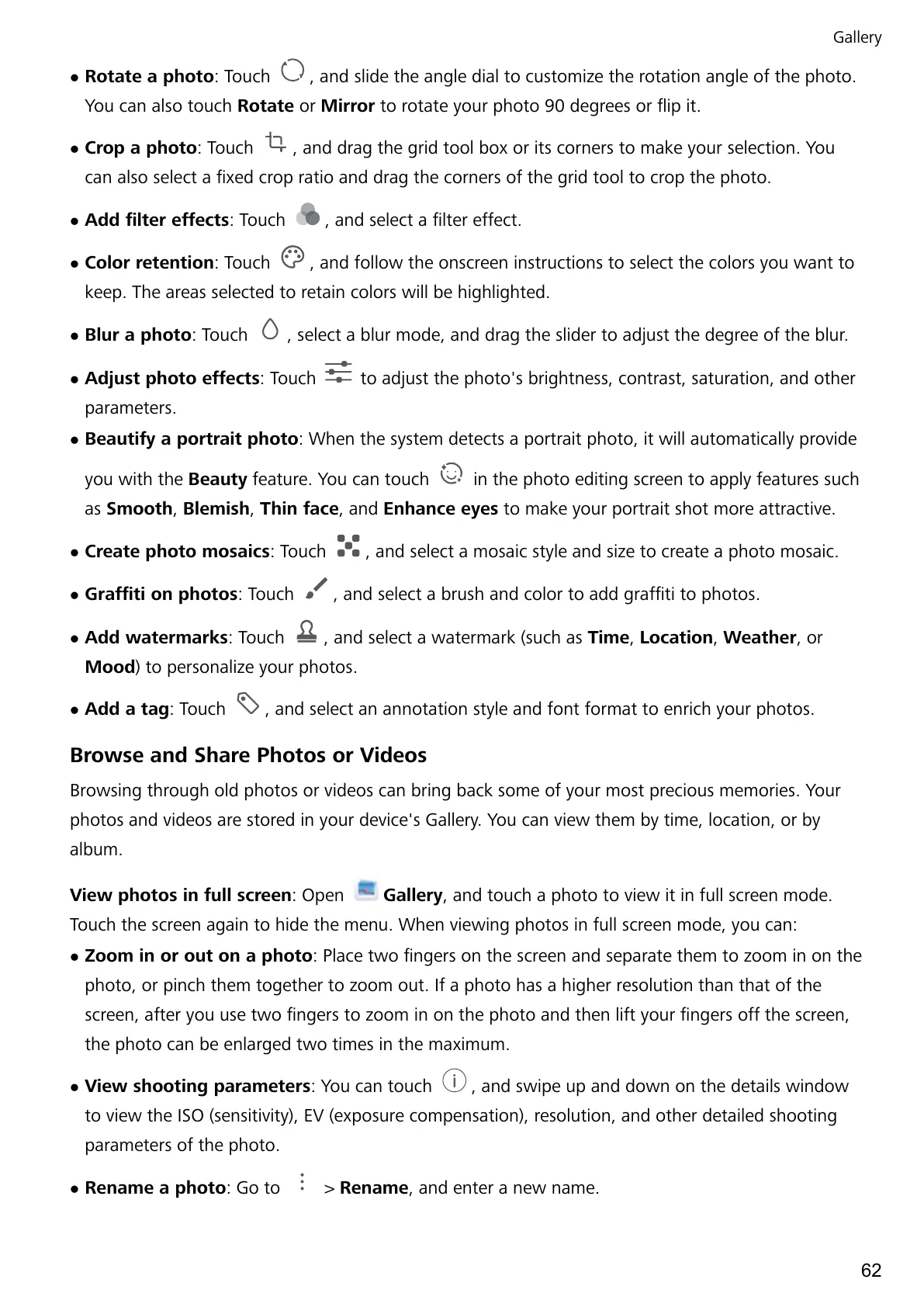 l Adjust photo effects: Touch to adjust the photo's brightness, contrast, saturation, and other