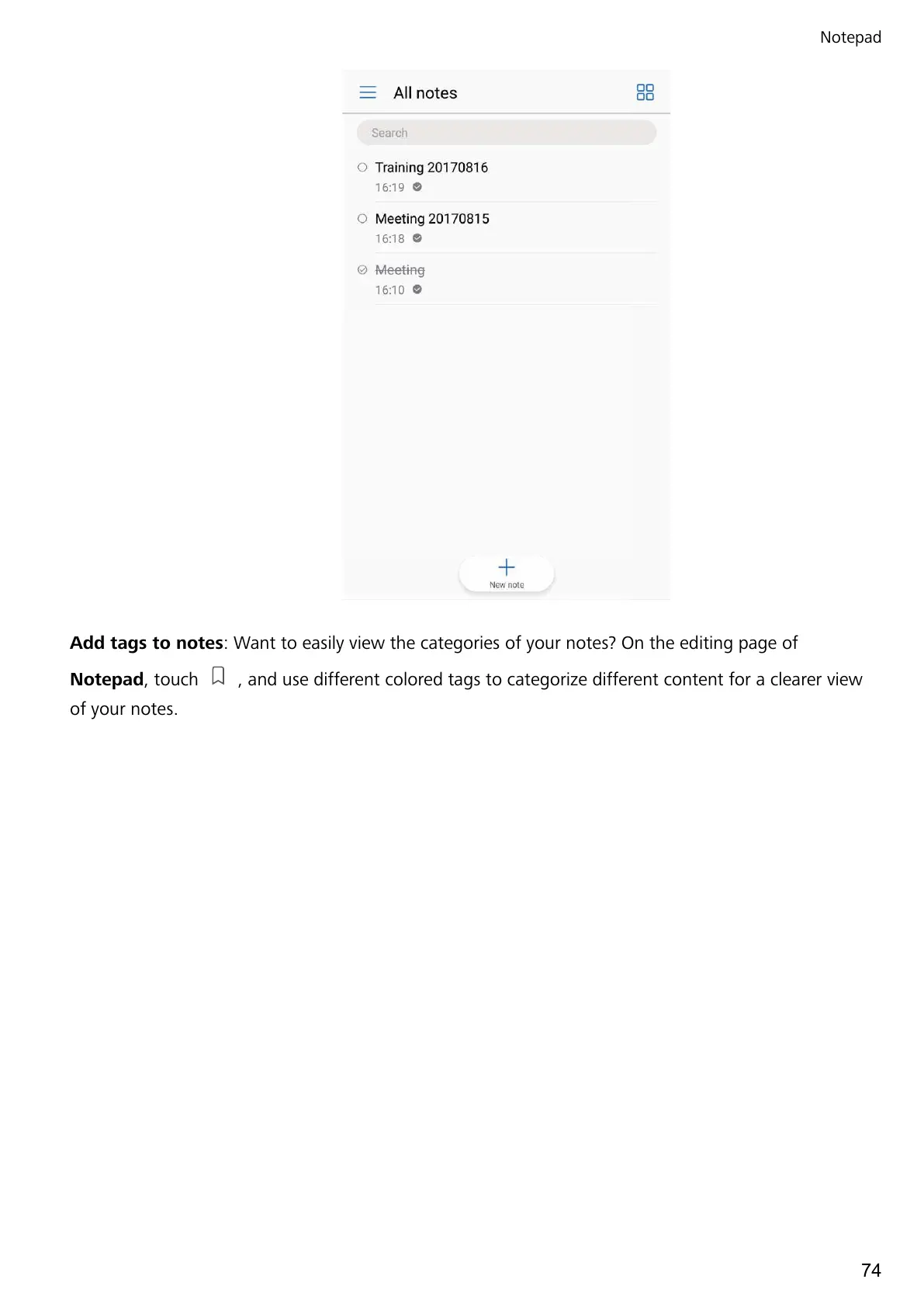 Add tags to notes: Want to easily view the categories of your notes? On the editing page of