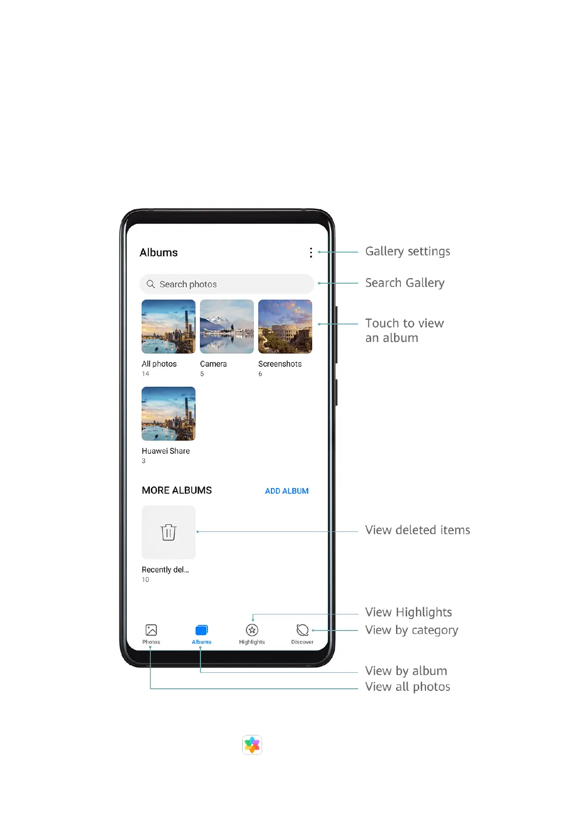 Your photos and videos are stored in Gallery and can be viewed by time, location,