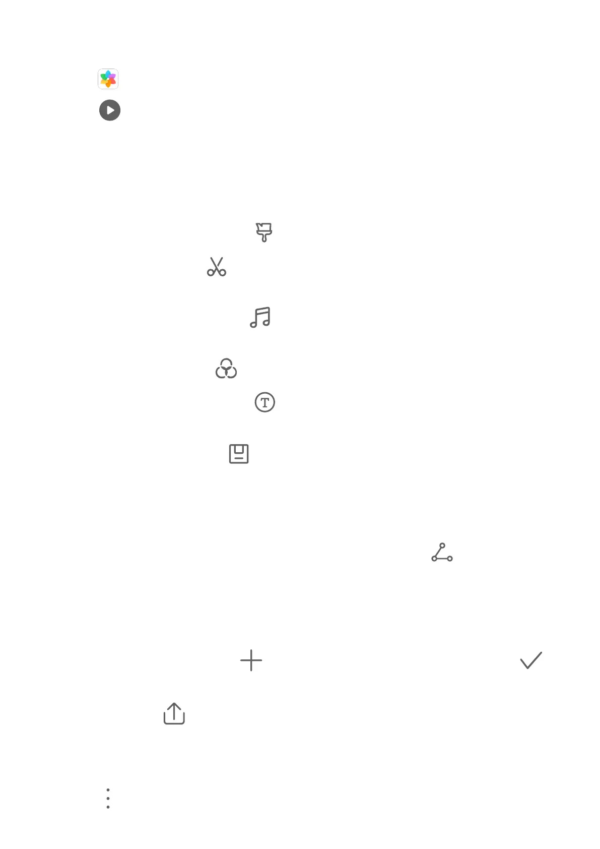 • Add lter eects: Touch to select a lter. Drag the slider to adjust the lter eect.