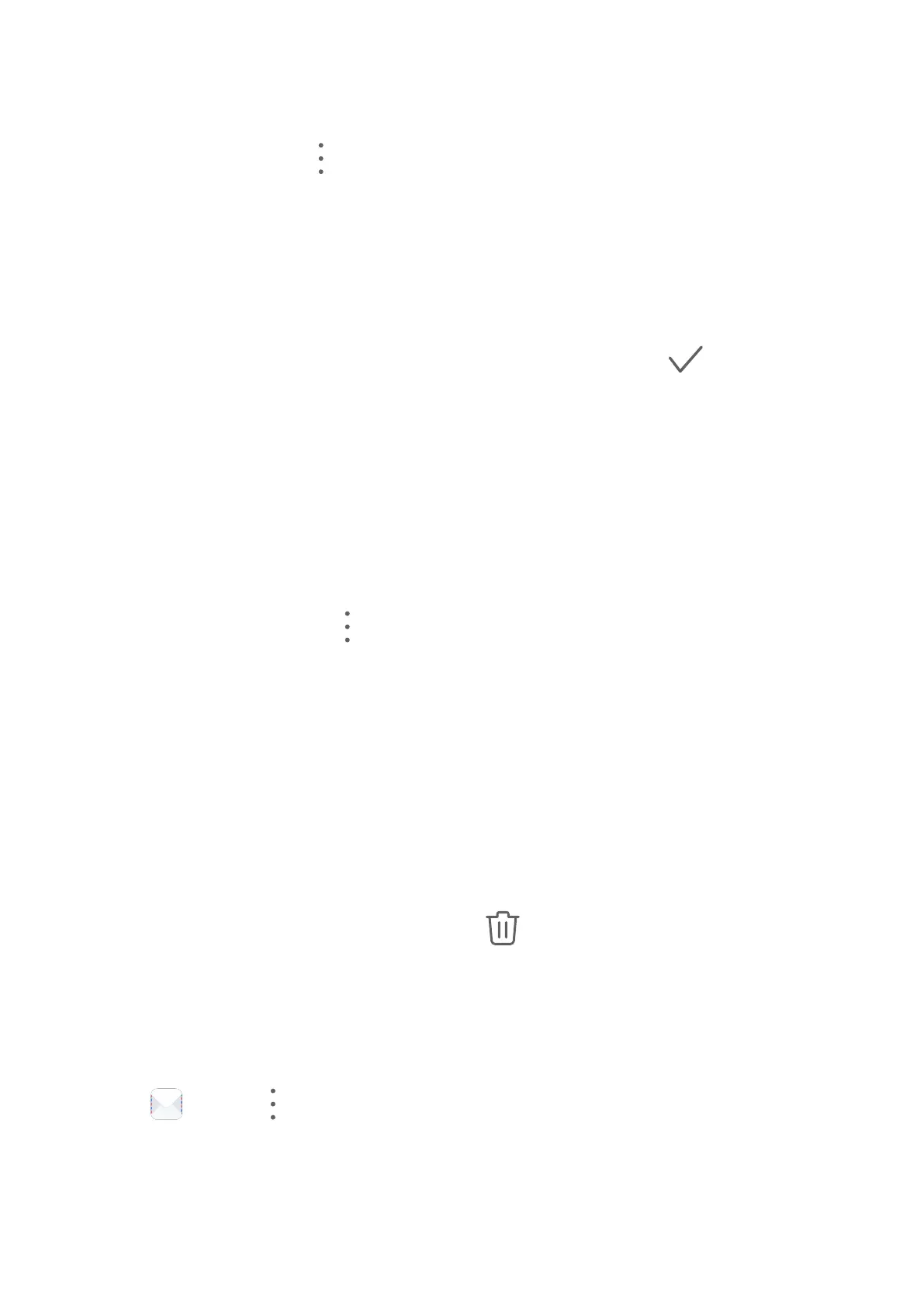 On the Inbox screen, touch and hold the email to be deleted, drag over the check boxes of