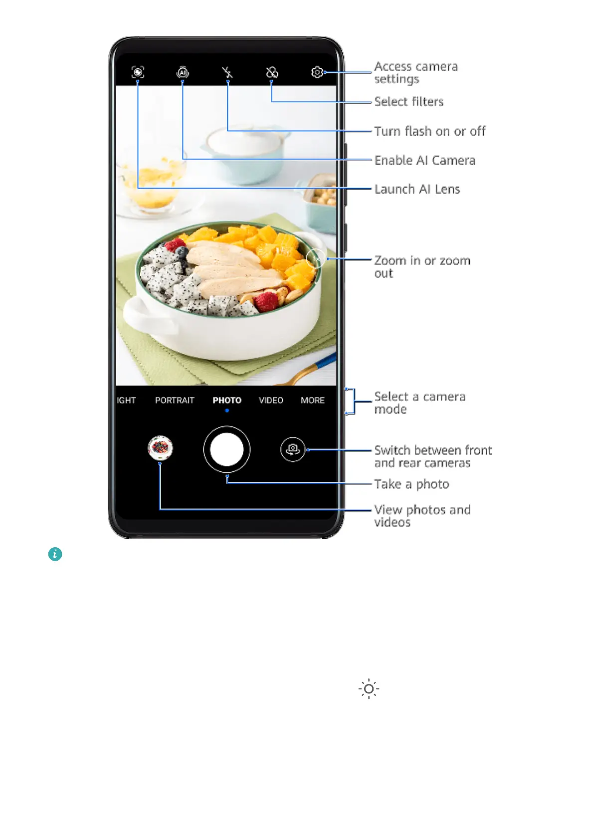 • Adjust brightness: Touch the viewnder. When the symbol appears next to the