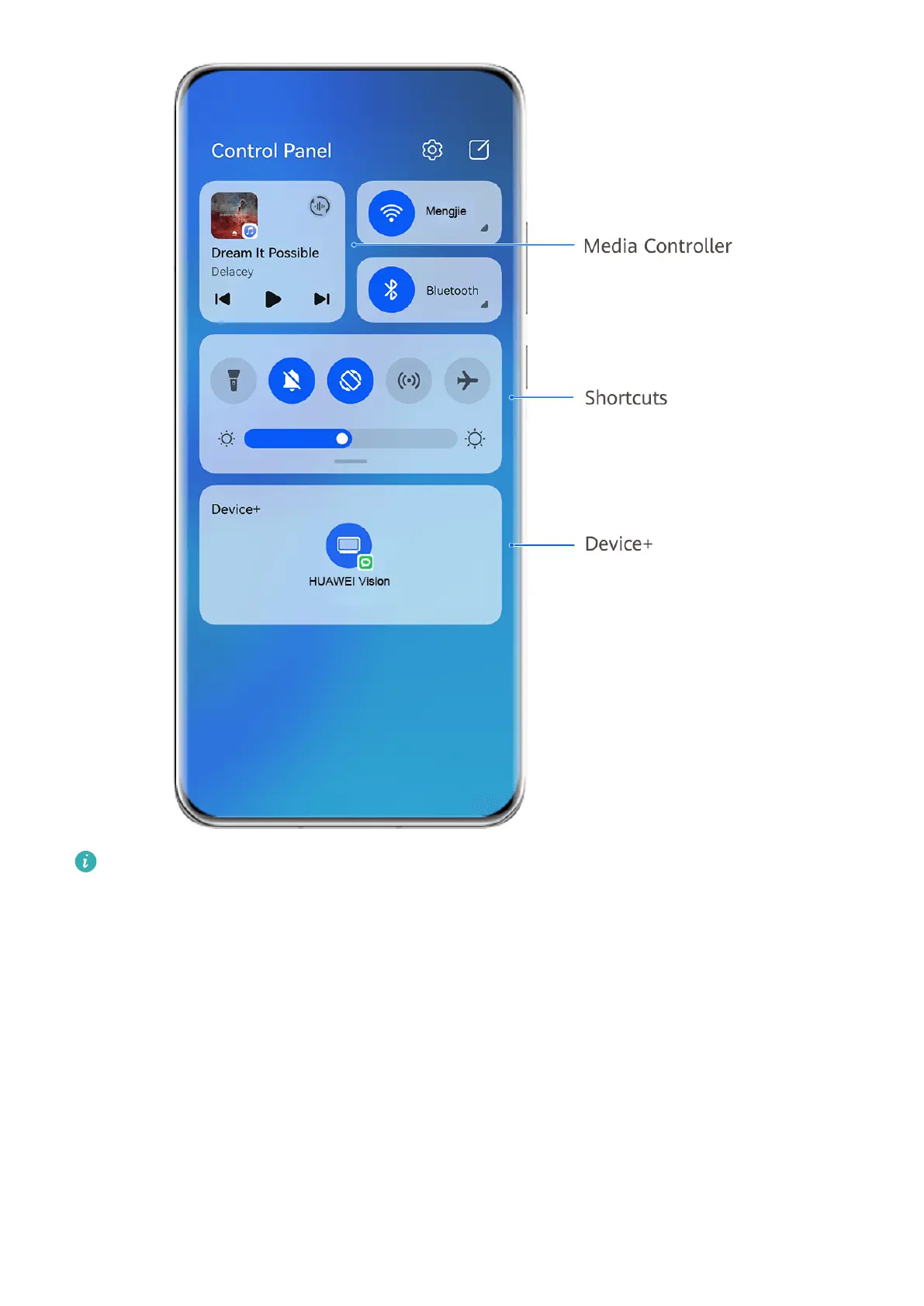 • Shortcut controls: To enable, disable, or set frequently used features.