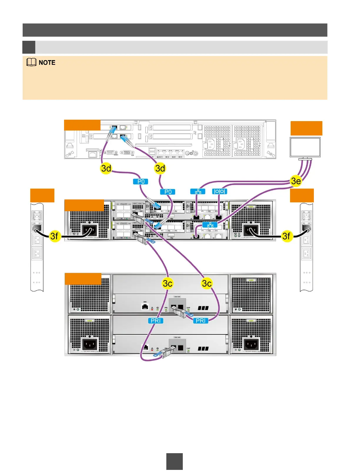 A generic view of cable connections on the controller enclosure