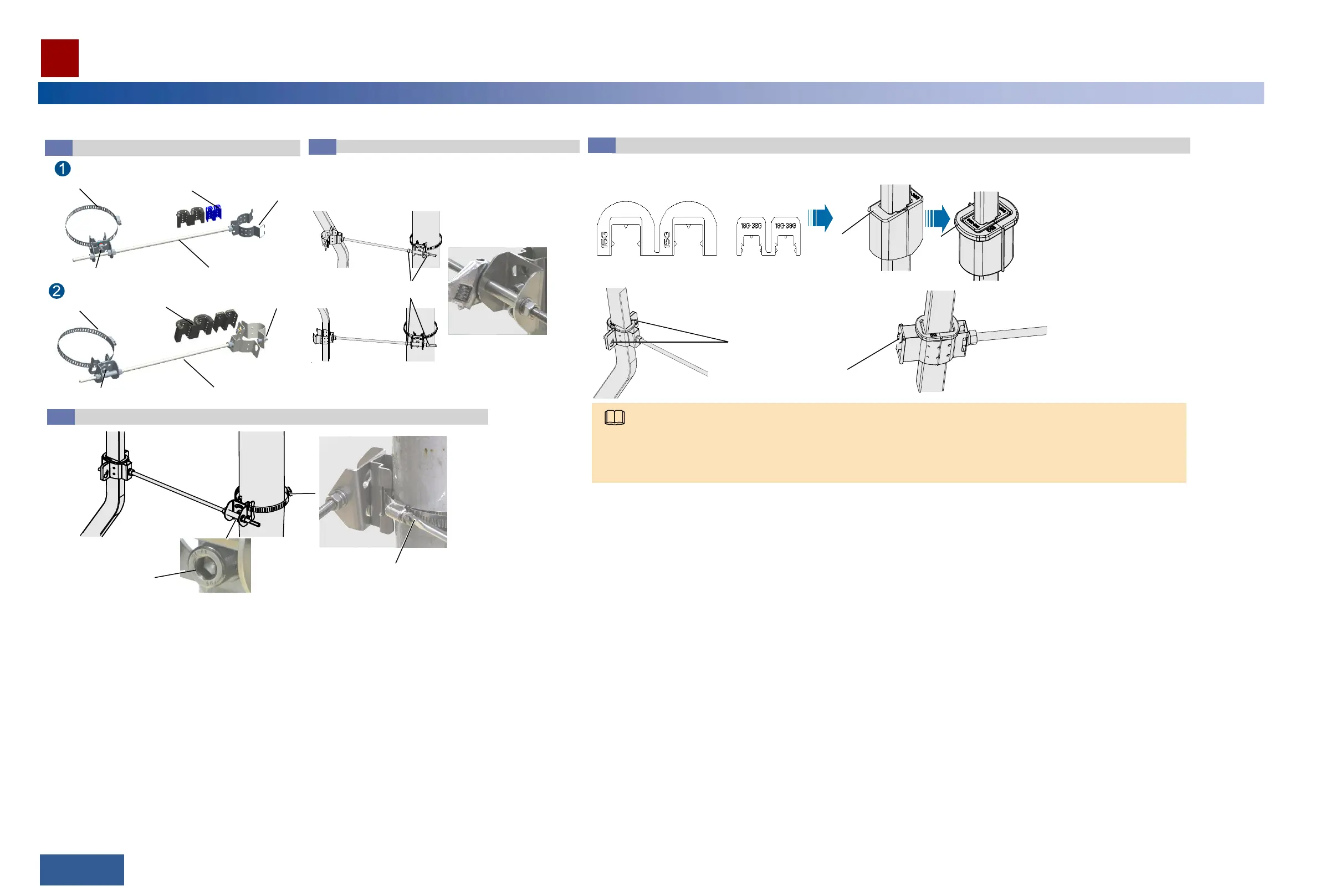 Install the flexible waveguide fixing set on a pole.