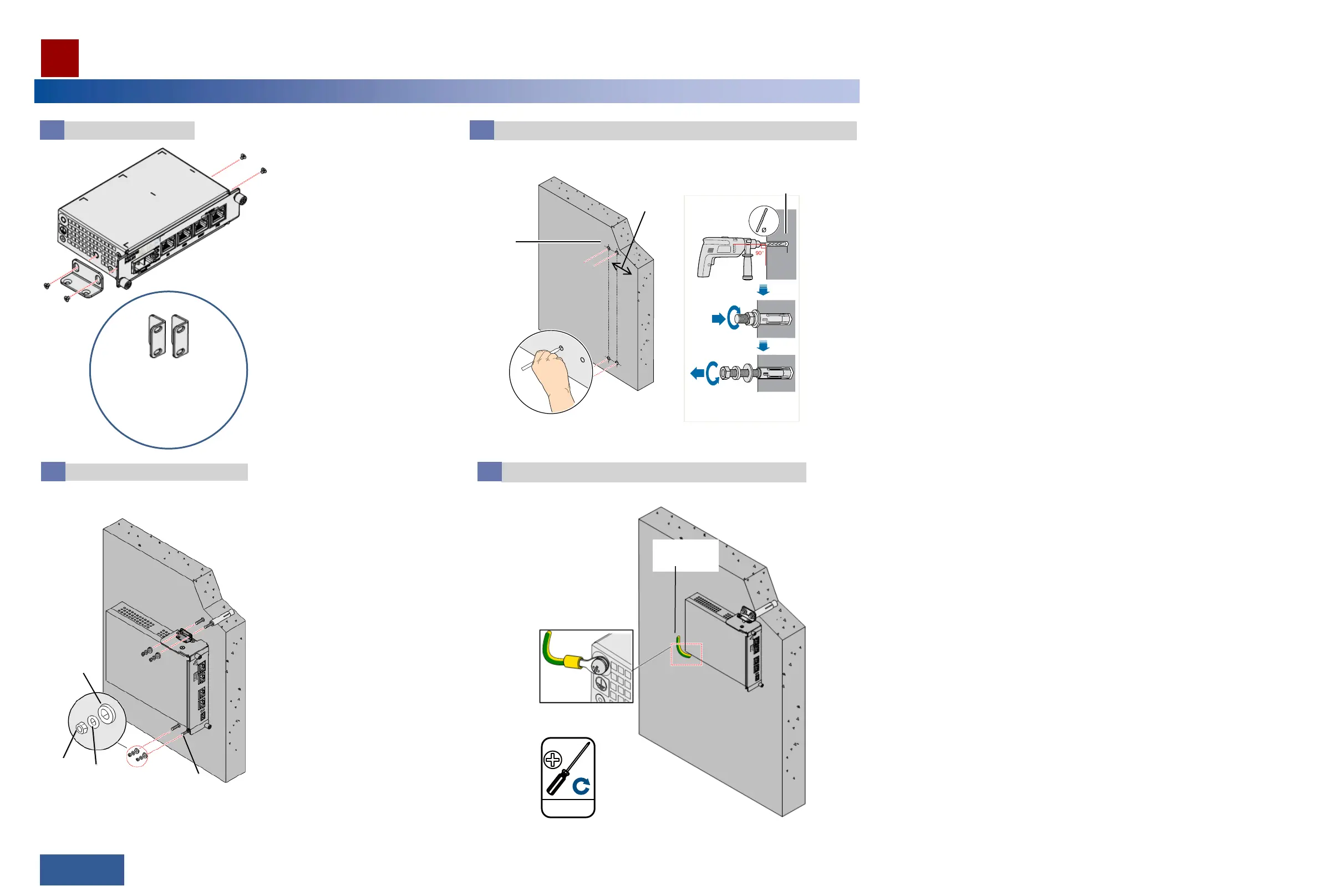 Hold the PI up to the wall and mark the drilling positions. Drill the holes and insert the fixing bolts.