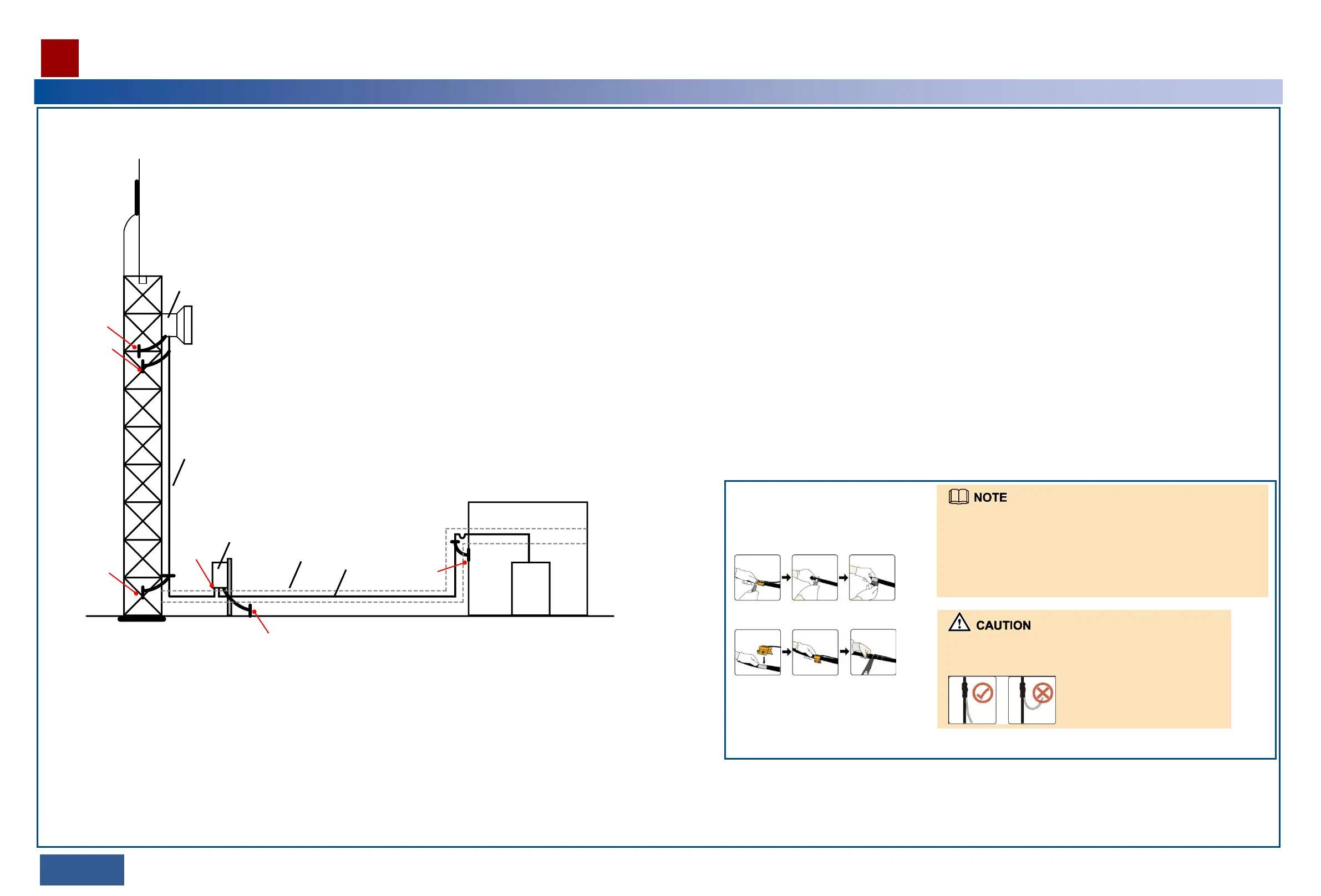 Point 3: Ground the P&E cable using a ground clip at a position about 1 m before the cable leaves the tower. If the PI is installed in the equipment room, ground