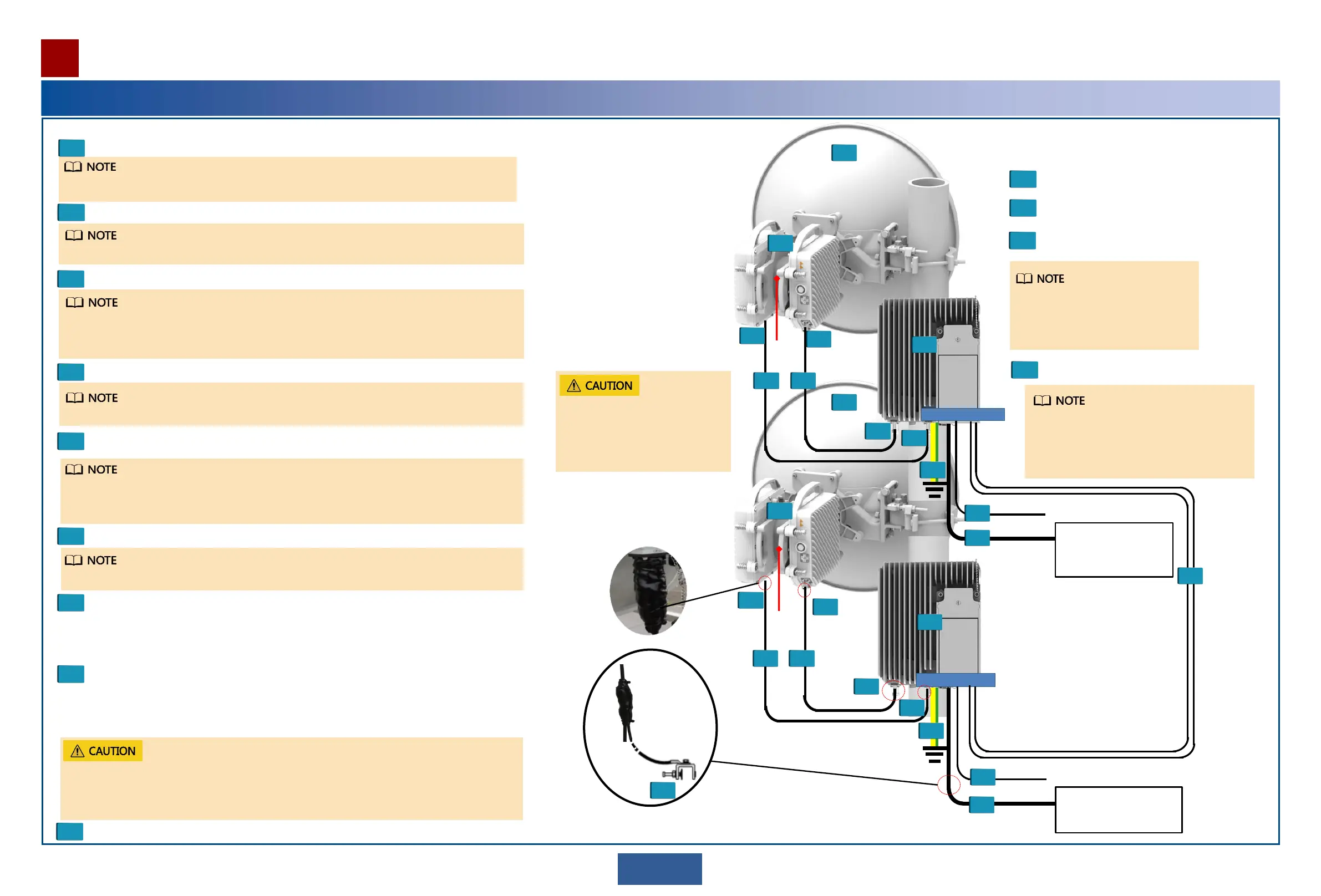 Install the device-side ground cable before you climb up the tower.