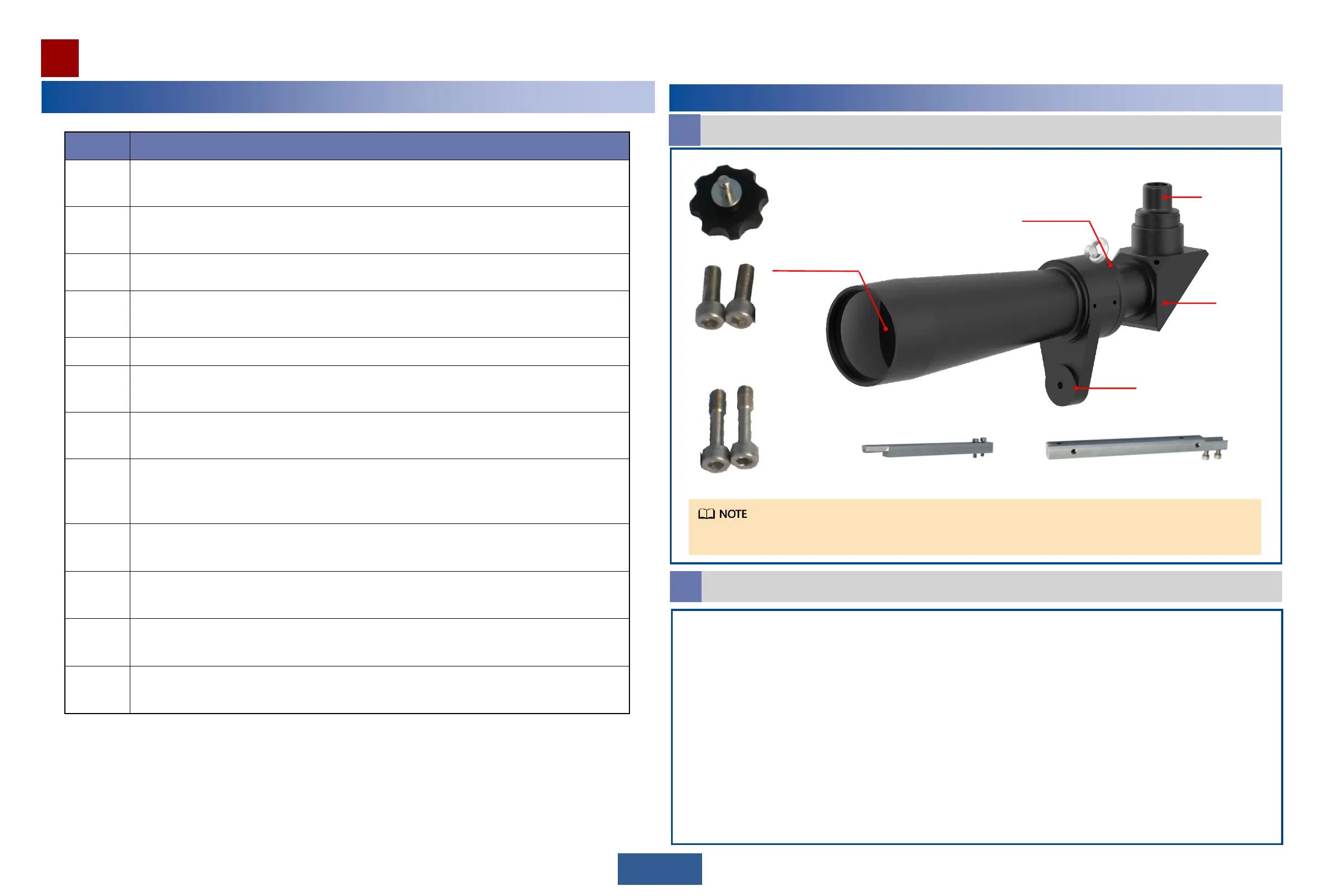 • Alignment scopes are high-precision devices for alignment. Before an aiming telescope leaves the factory, parts
