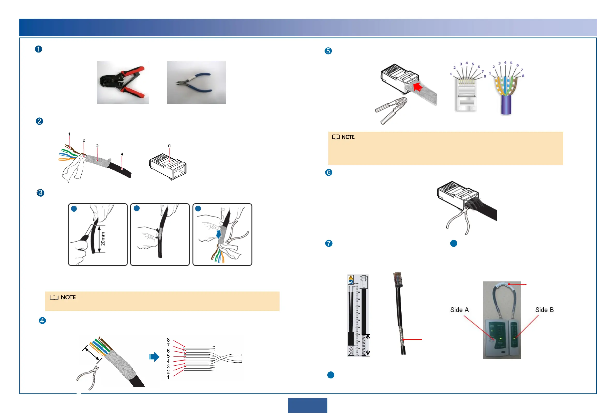 Insert the arranged core wires into an RJ45 connector according to the pin assignments and crimp the