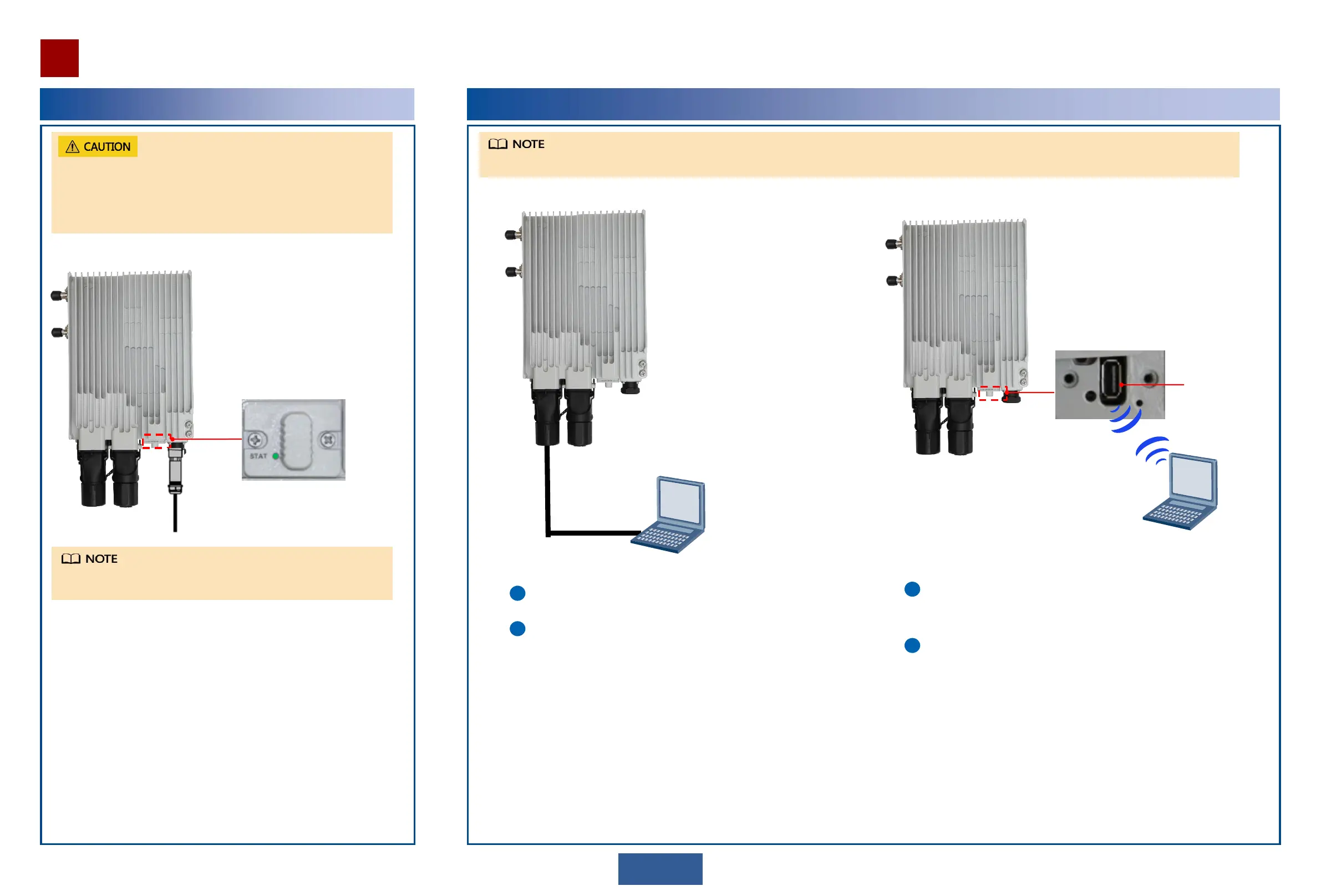 The OAU 2F supports use of a network cable to directly connect the NMS port to the Web LCT. It also supports use of a WLAN module to connect to the Web LCT.