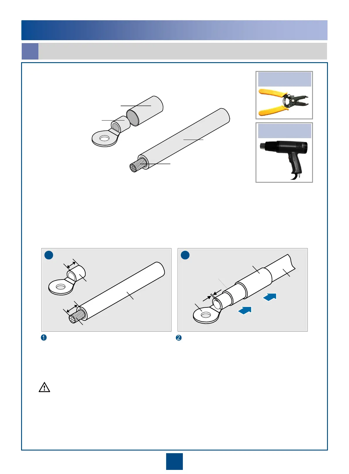 After the conductor is routed into the OT terminal, the exposed part L2 of the conductor of the power cable