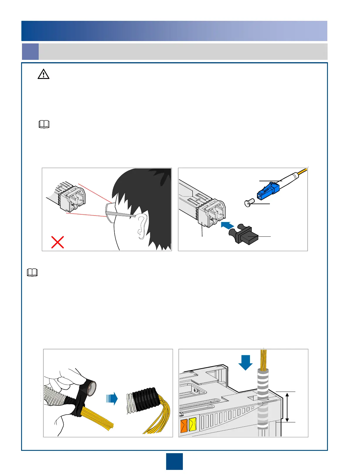 When routing fibers, take proper measures to avoid any damage to fiber connectors