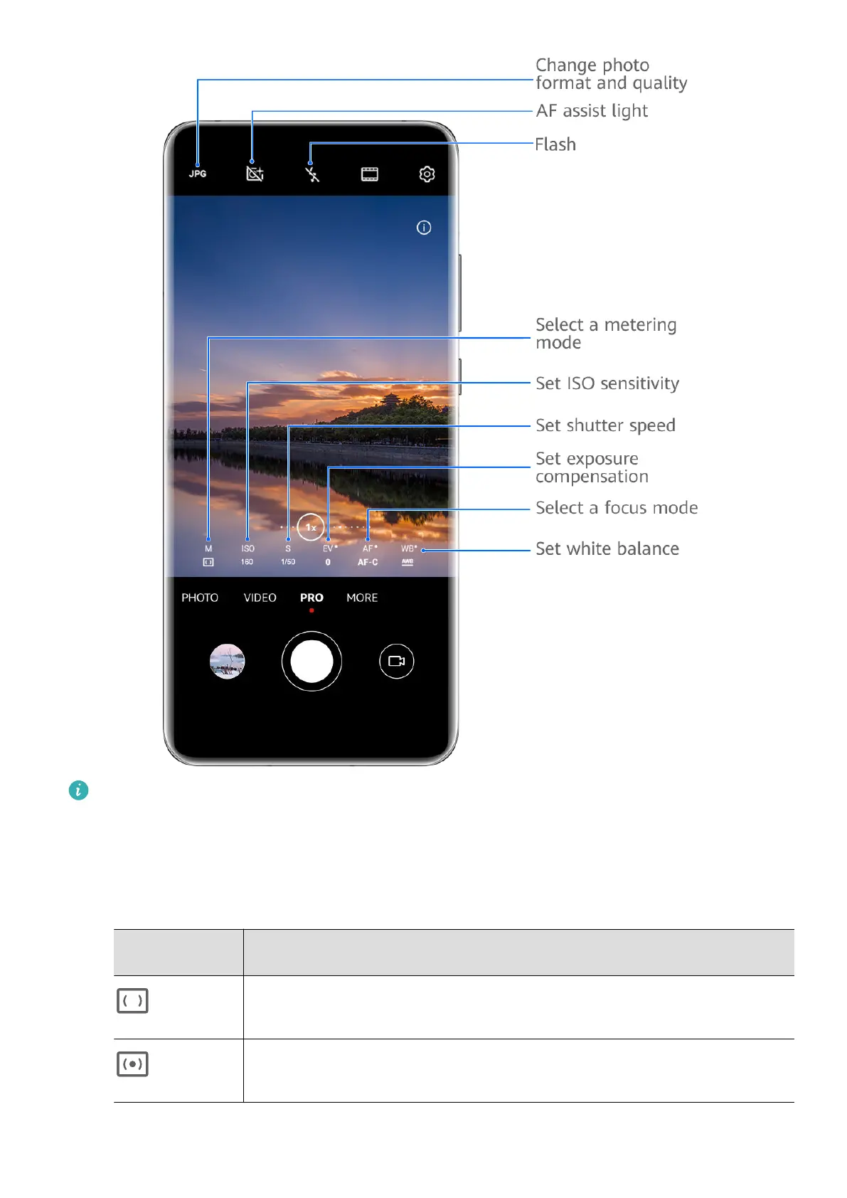 1 Open Camera or go to Camera > More (depending on your device model), and select Pro
