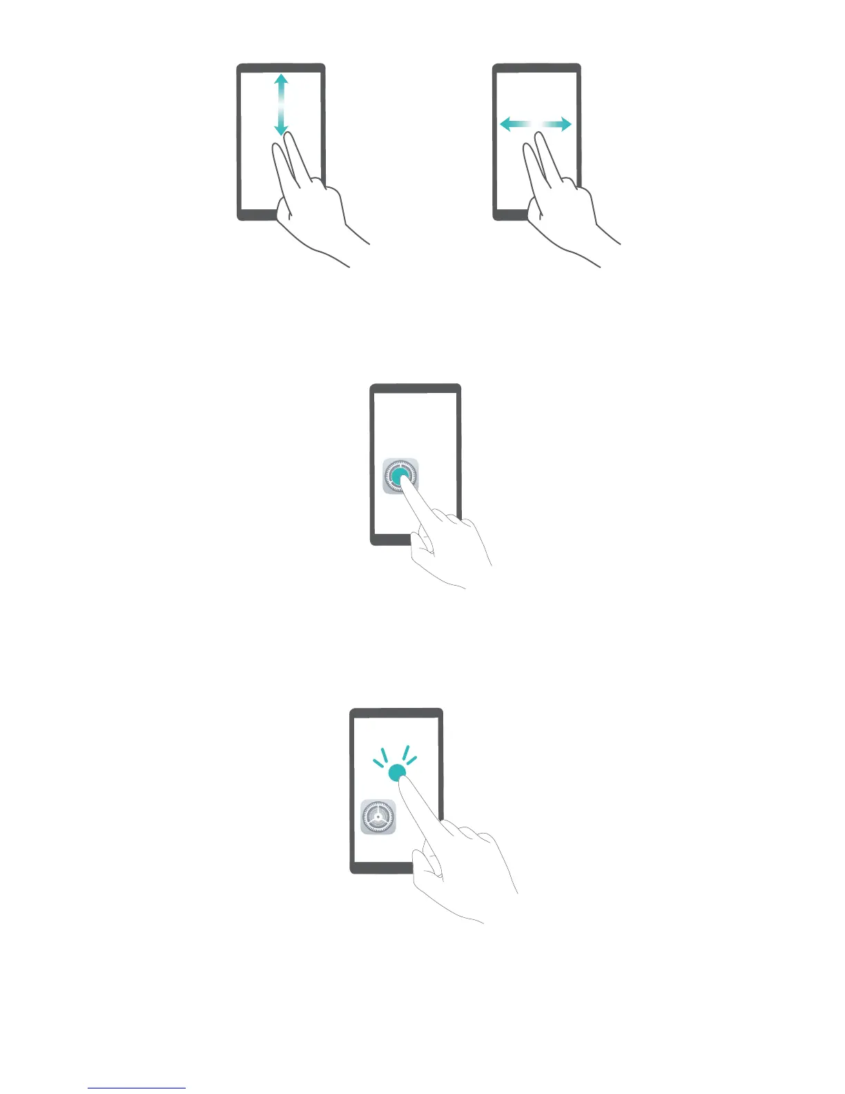 For example, if you want to open Settings, touch the Settings icon once with one nger, then touch