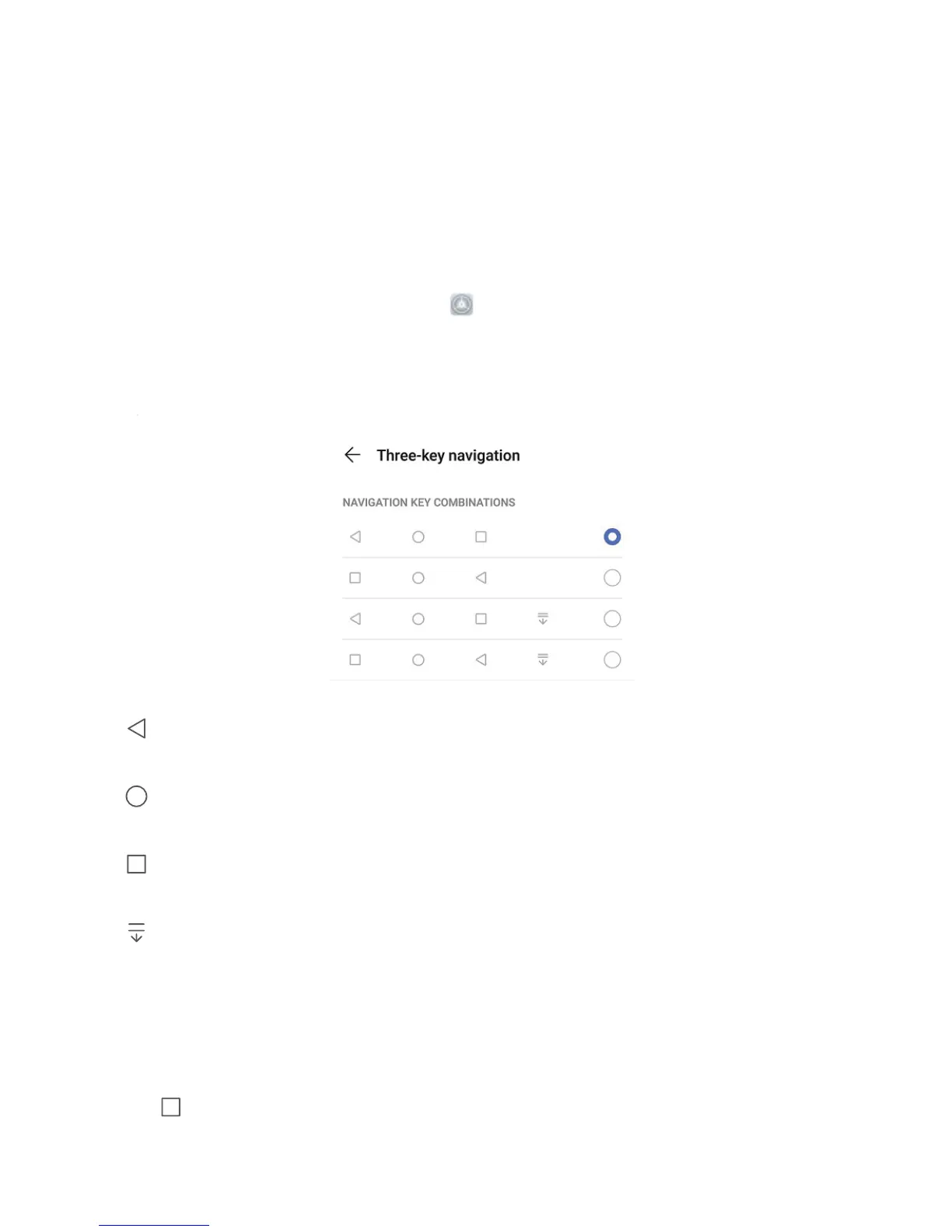 navigation > Three-key navigation > Settings, and select the navigation key combination and
