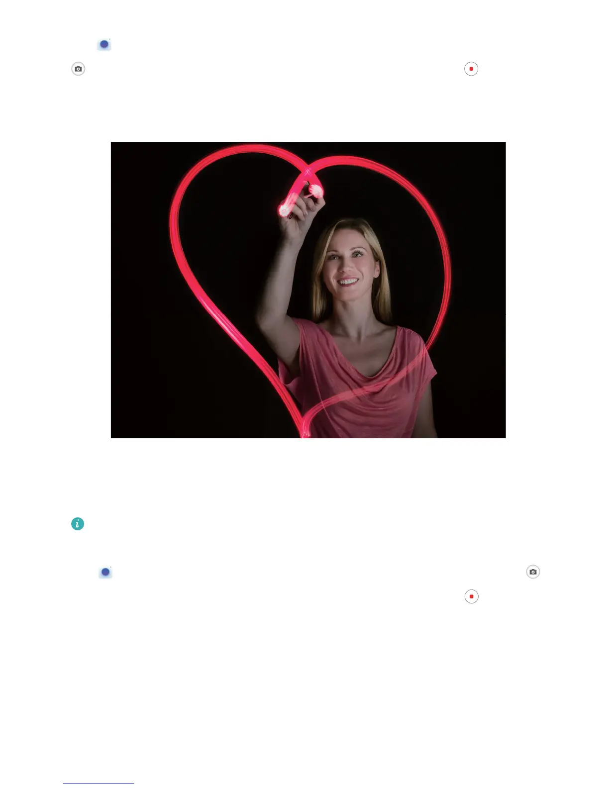 Open Camera > More > Light painting > Light grafti. Hold your Phone steady, and then touch