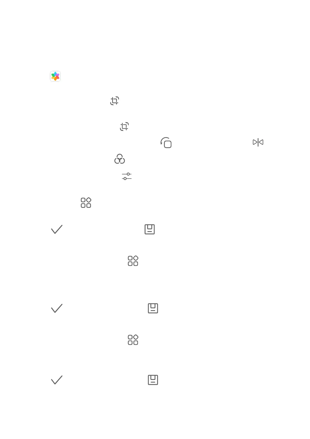 To rotate the photo by 90 degrees, touch . To mirror the photo, touch .