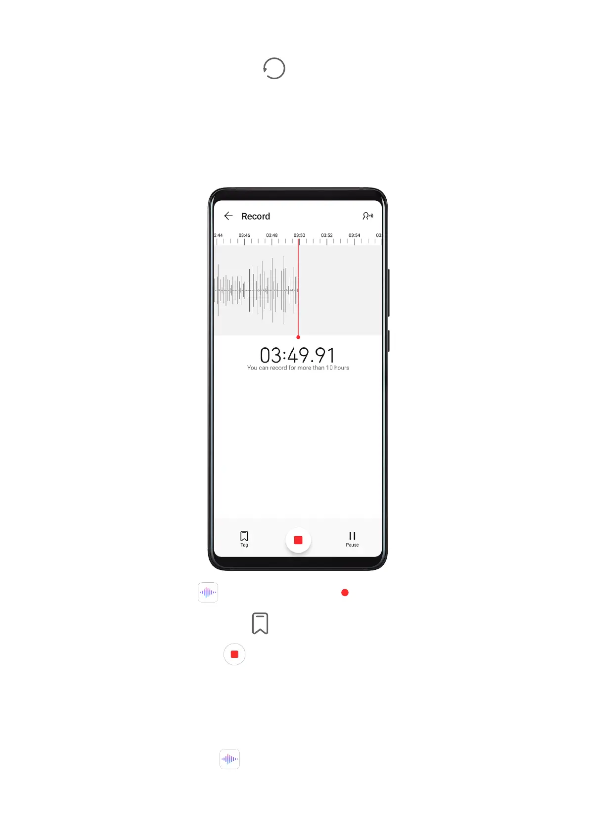 1 In the Tools folder, open Recorder, and touch to start a recording.