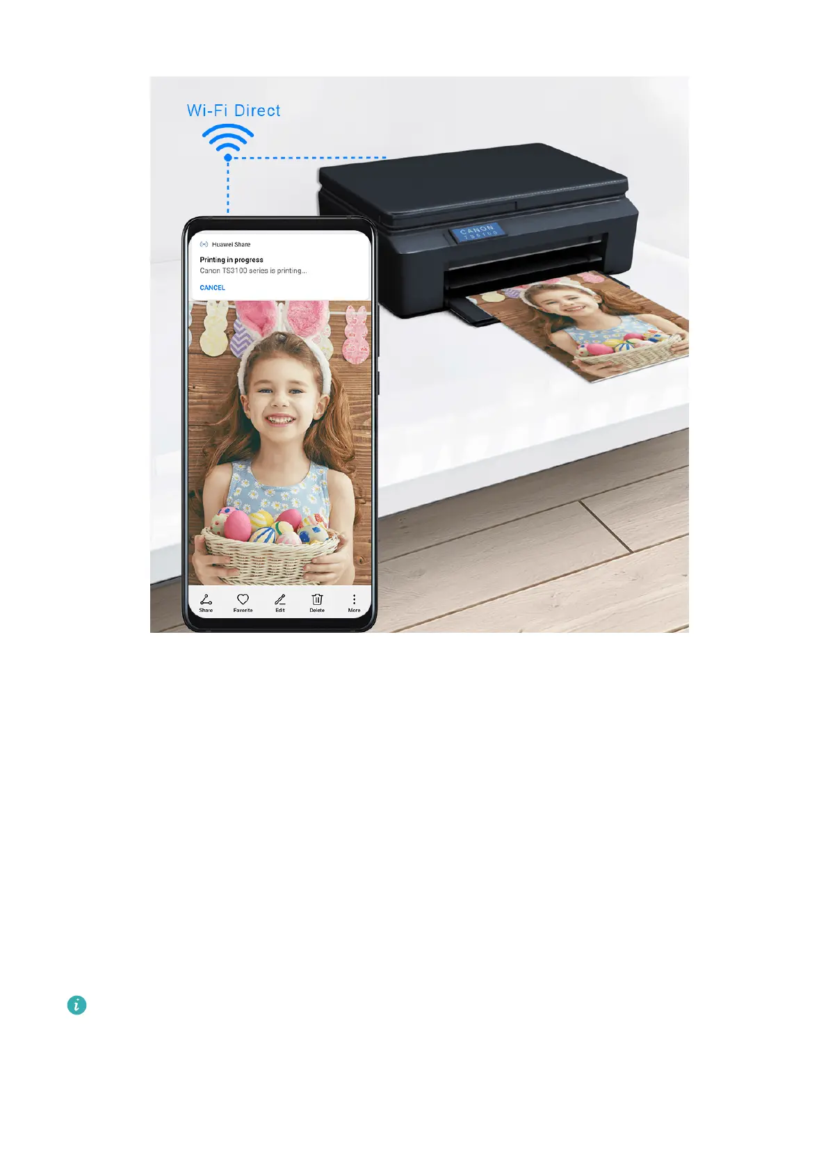 2 On your phone, preview the le to be printed, then go to Share > Huawei Share.