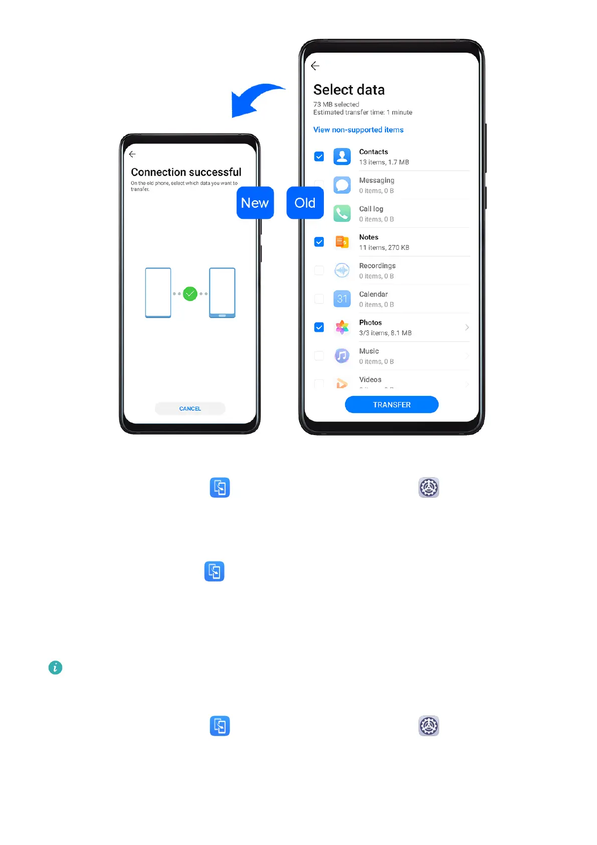 updates > Phone Clone, touch This is the new phone, then touch Huawei or Other