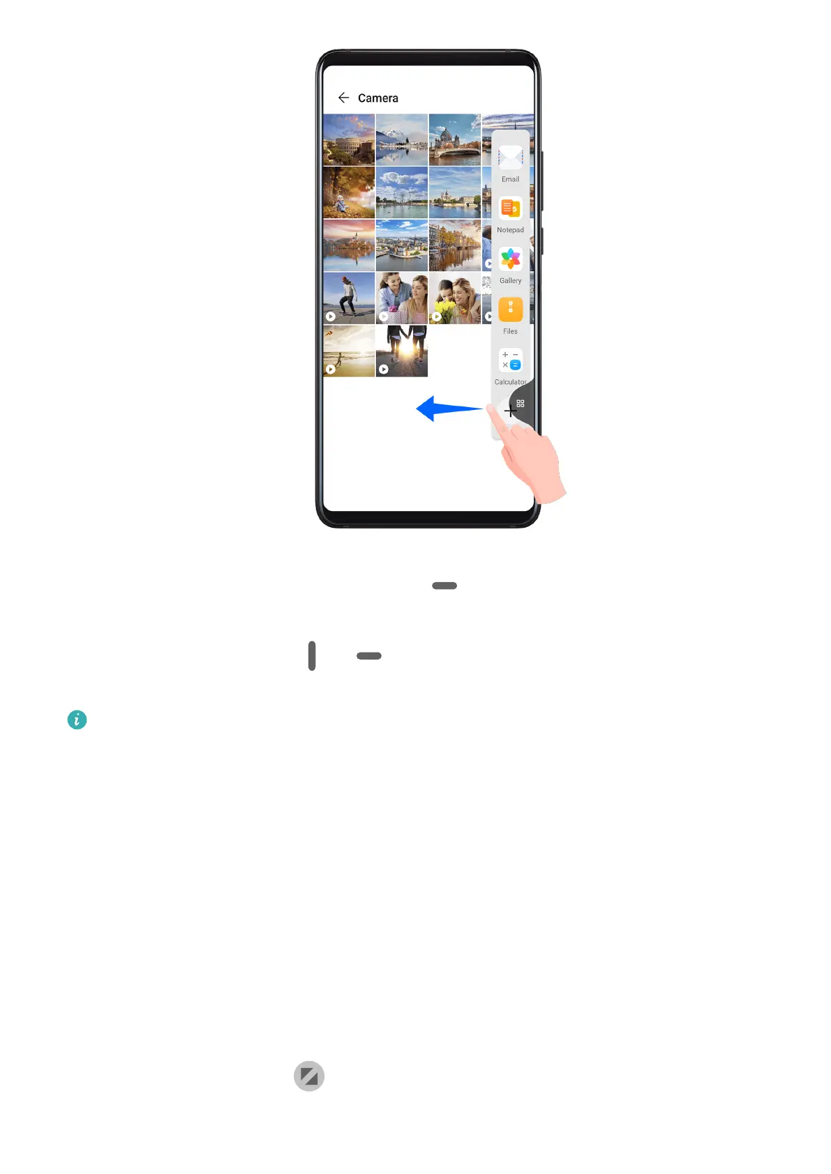 1 Swipe inward from the left or right edge and hold to bring up the Multi-Window dock.