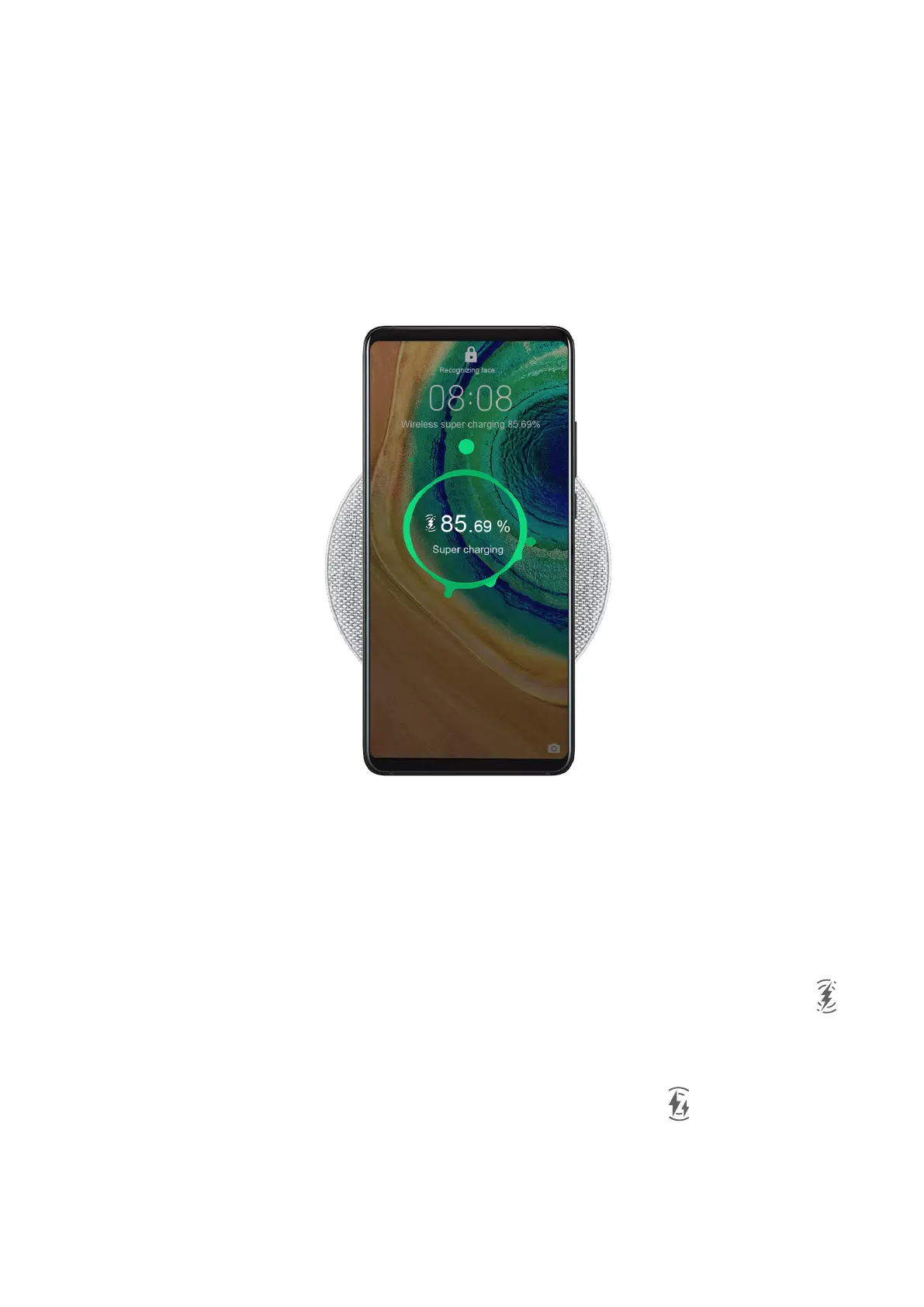 phone at a fast charging speed. The wireless QuickCharge icon will be displayed
