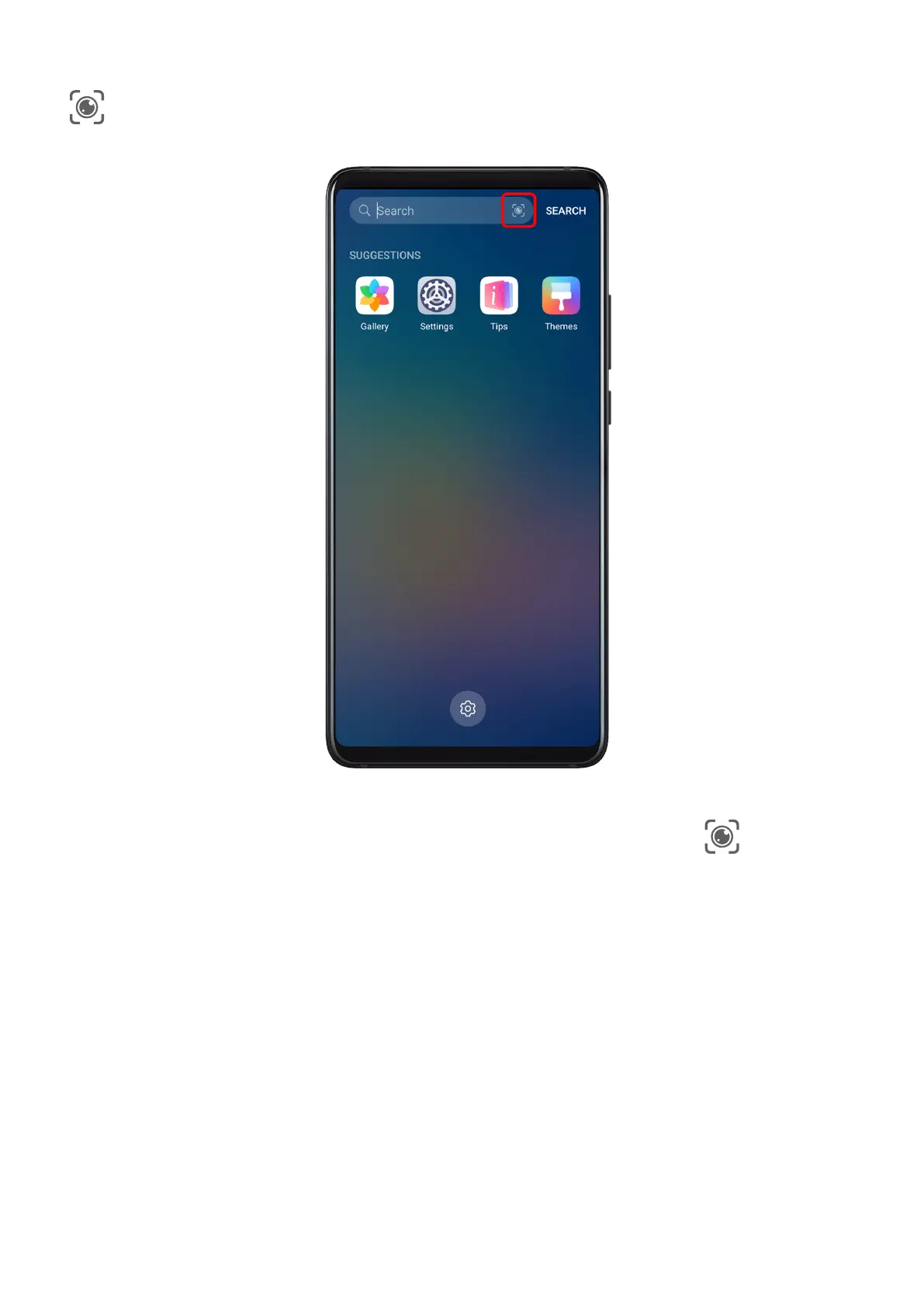 While the device is unlocked, swipe down on the screen to display the search bar. Then, touch