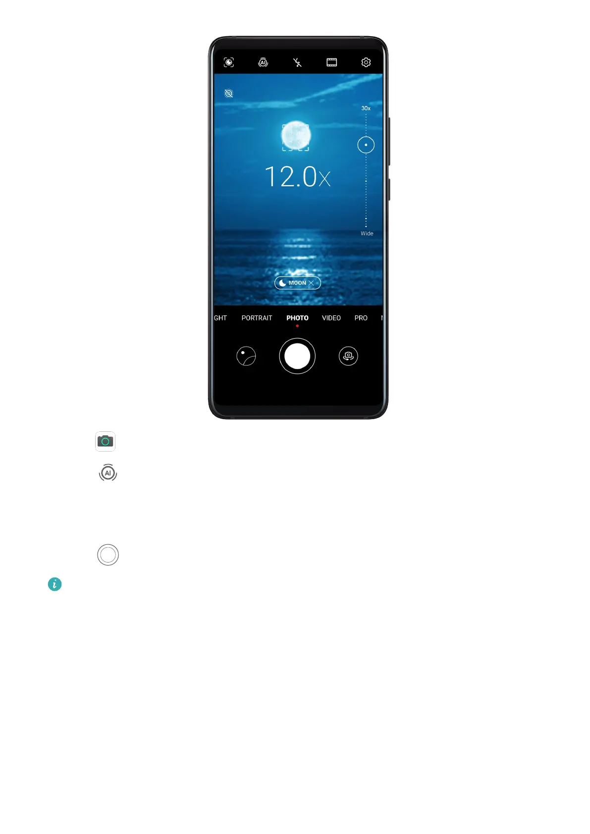 3 Aim the camera at the moon and spread your ngers on the viewnder to adjust the