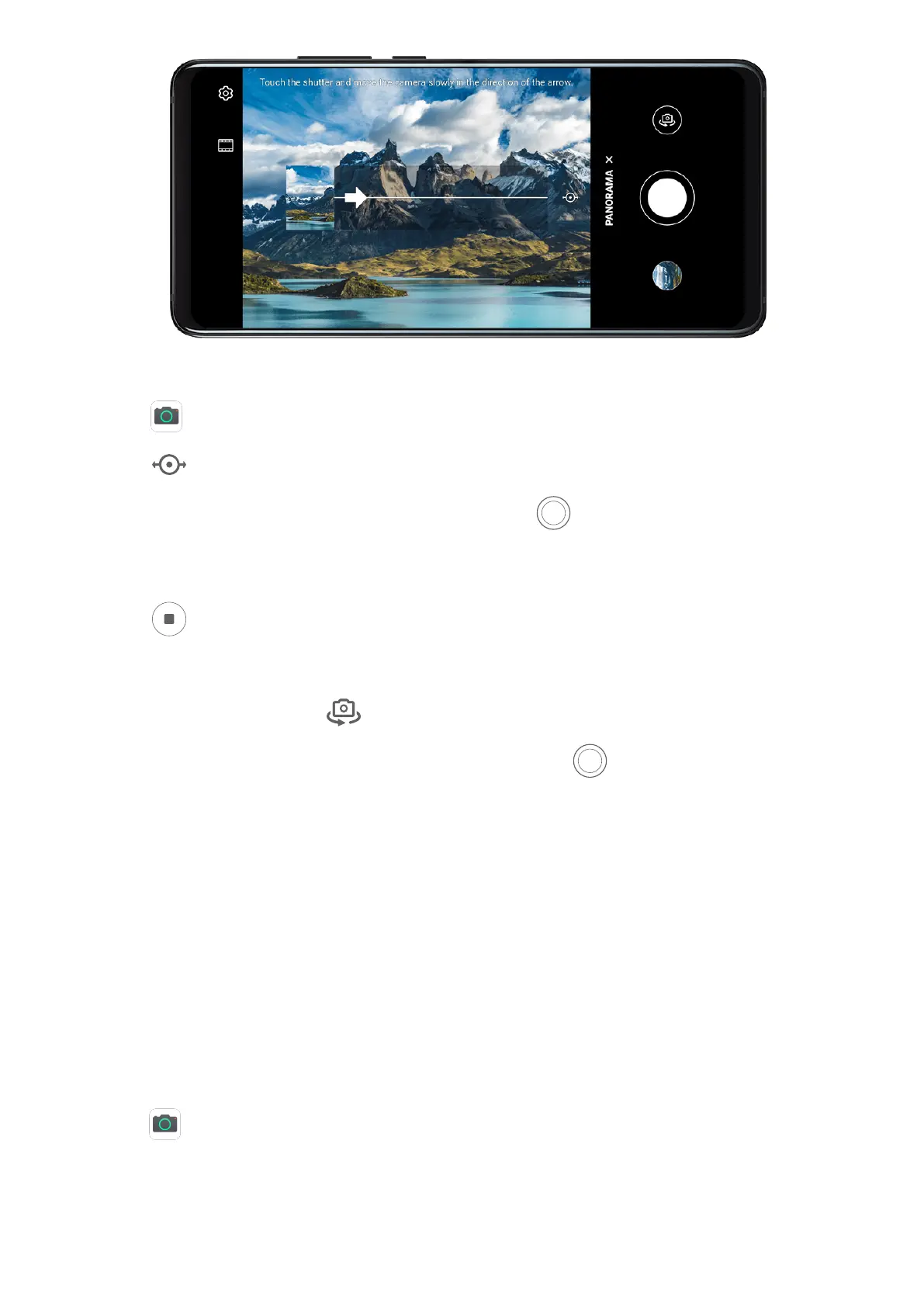 3 Point the camera at your starting point, then touch to start shooting.