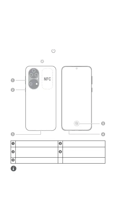 • To power on your device, press and hold the power