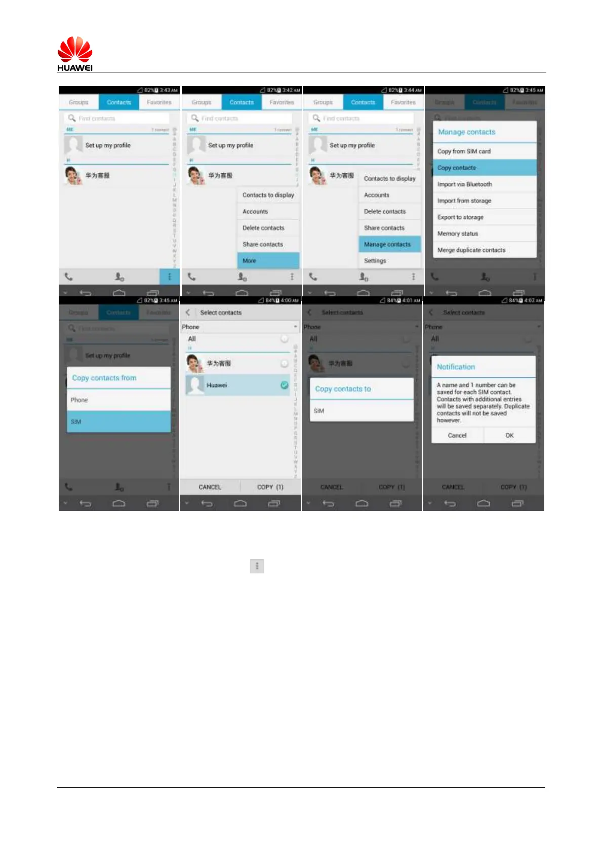 2. Select the desired contacts, and touch Copy > Phone > OK.