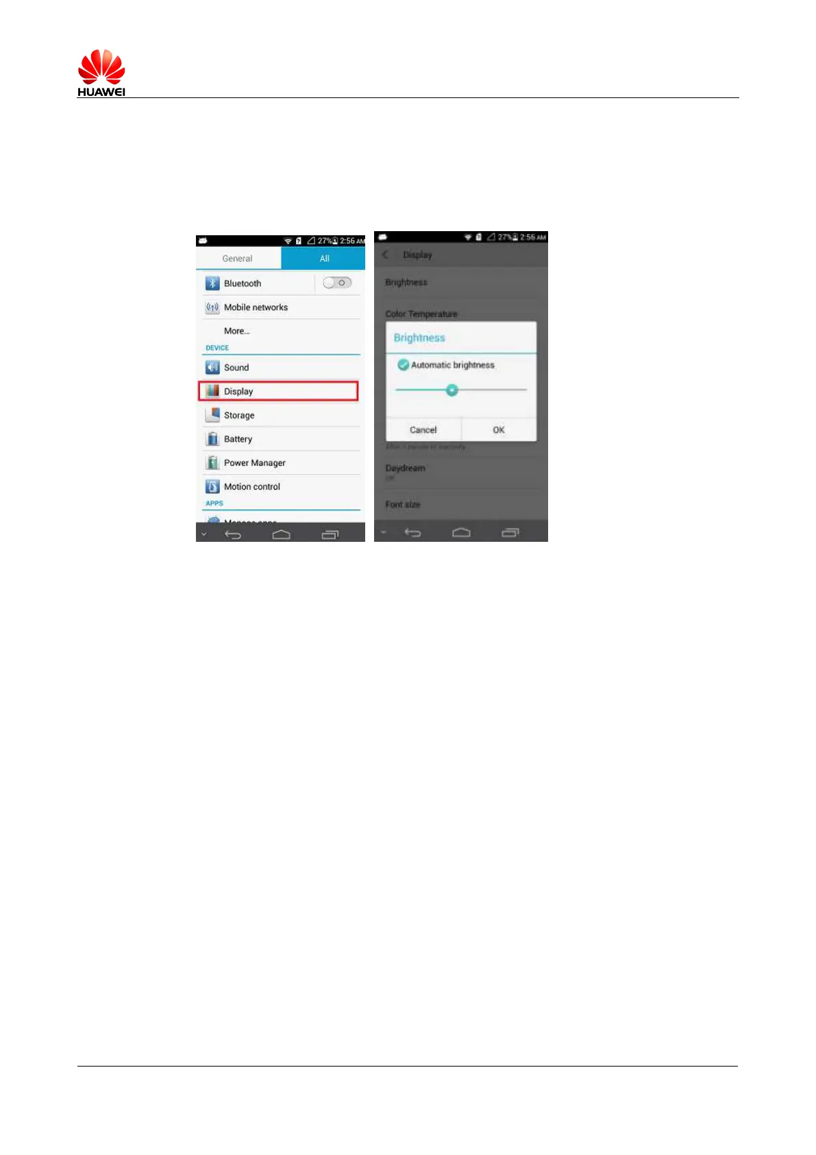 Touch Settings > Display > Brightness. Select Automatic brightness or manually drag the