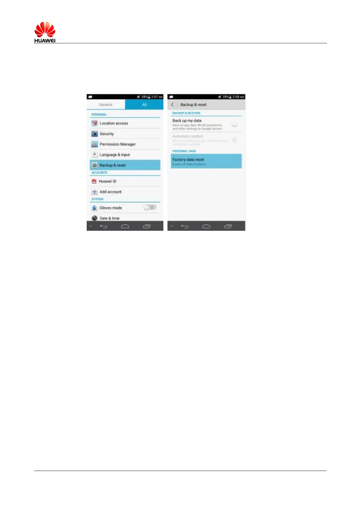 Step 1 Touch Settings > Backup & reset > Factory data reset.